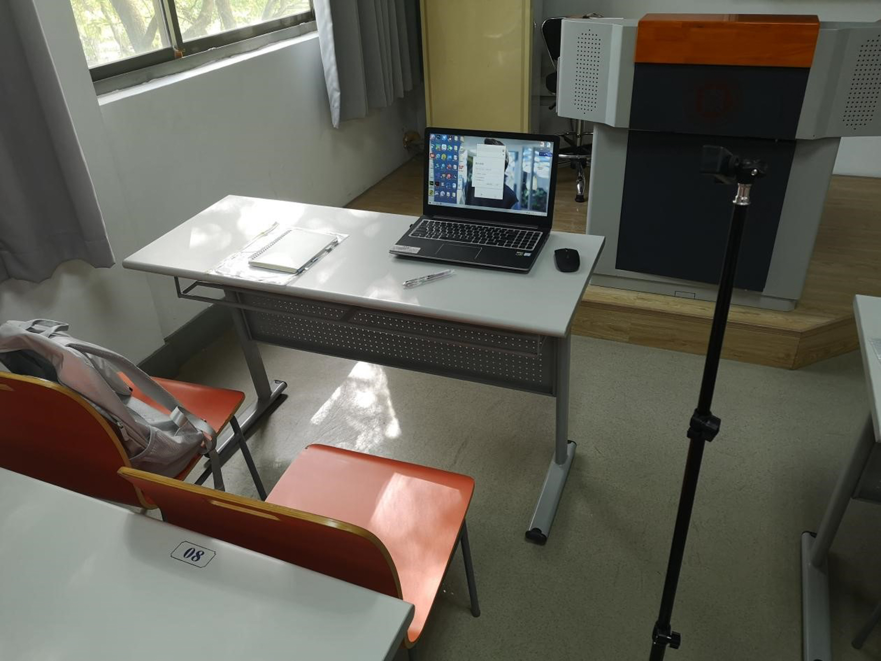 在教学楼区域,信息办针对教室的有线和无线网络进行了优化调整和压力测试,并与校外老师连线测试,实际效果均可满足线上复试的要求。复试当天,信息办技术支持老师将陪同考生提前一个小时到达复试教室进行各项设备的调试。学生复试时,志愿者会在外“守门”,防止有人意外闯入、手机外放声音干扰等意外情况发生。