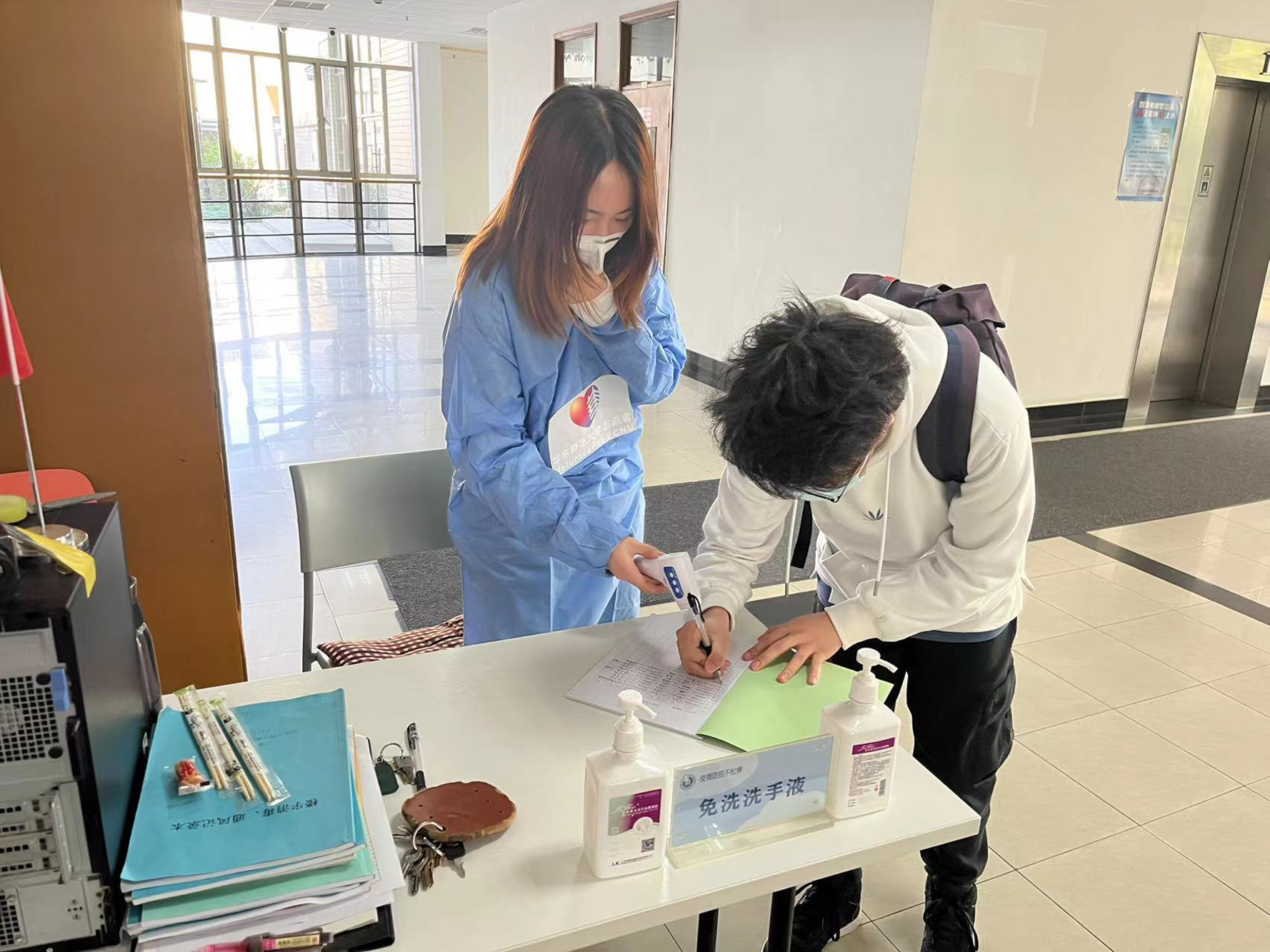 学生复试时,志愿者会在外“守门”,防止意外情况发生