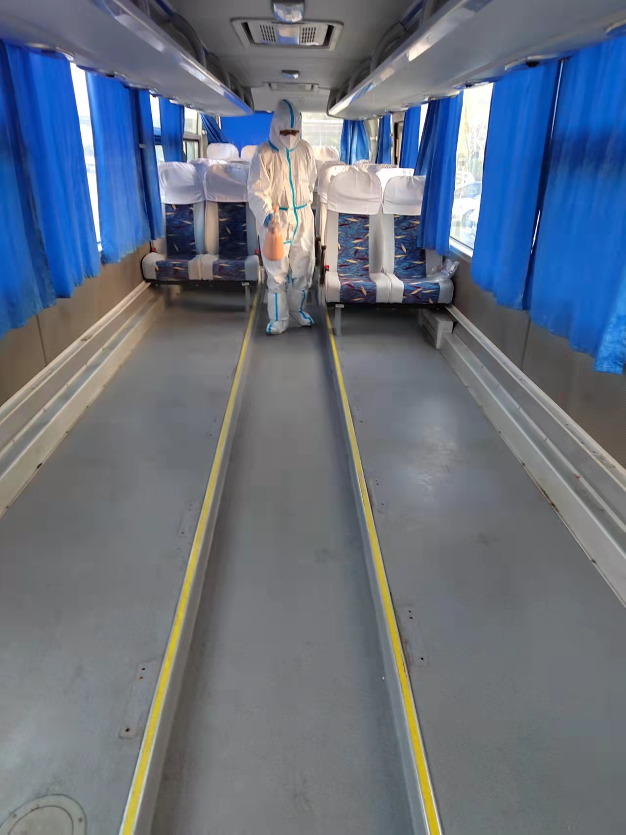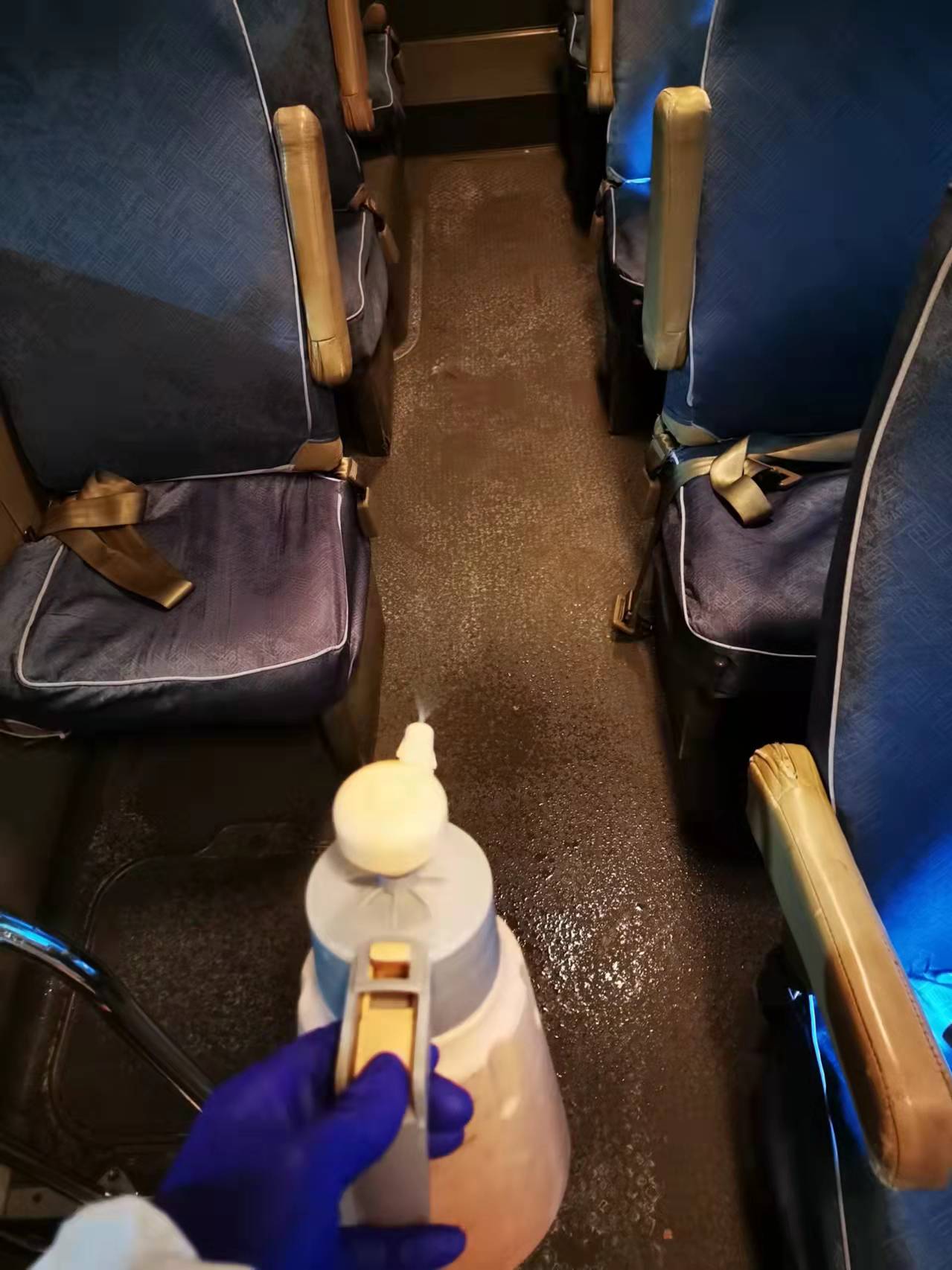 我们闵行车队从一开始就做好了打硬仗的准备,在严峻的形势下,车队的师傅们从早忙到晚,甚至有时候工作到凌晨三点左右,饭都没时间吃。我们每次出车前都会进行车辆消毒,做好“一车一消毒”,晚上工作结束后再消毒。