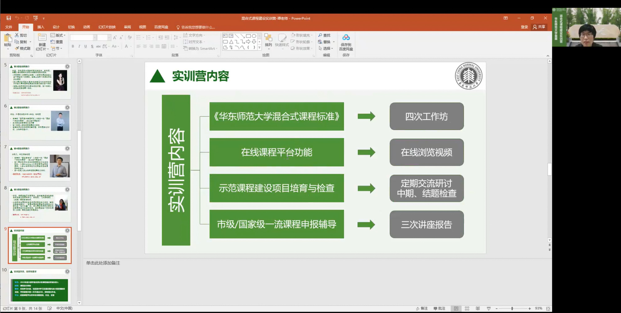 为落实华东师大卓越育人纲要要求,建设卓越教师队伍,学校对2022年度立项建设的24门大夏学堂优质示范课程负责人探索新的研修方式,由5位专家和24位学员组成“混合式课程建设实训营”,实训营改变了单纯专家讲座的方式,将持续跟踪示范课程建设的全过程。4月9日晚,实训营正式开营。