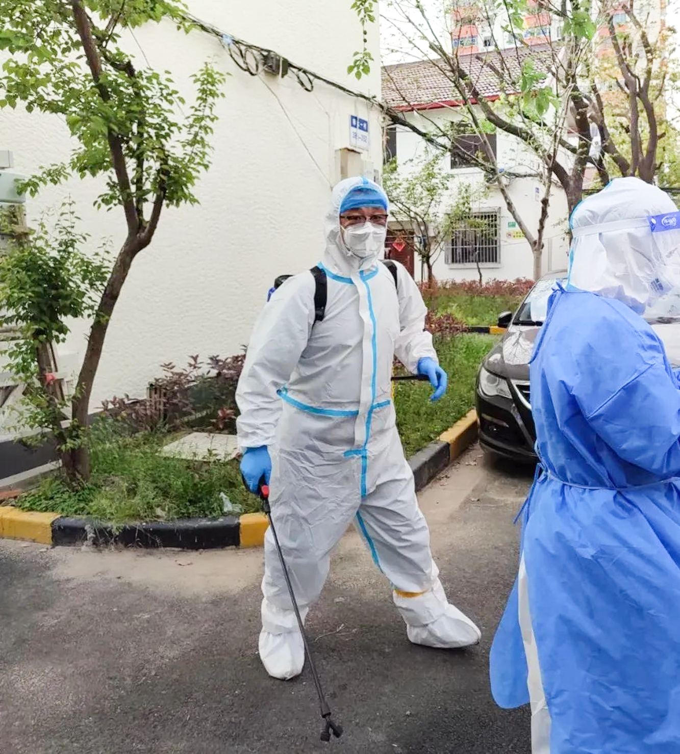 4月10日,重装上阵。今天的任务不是核酸检测内场外围的消杀服务,而是对核酸检测及抗原检测异常的居民所在楼宇楼道进行消杀。