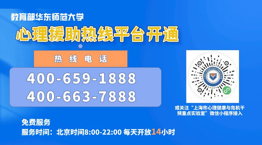 在此疫情防控的关键时期,为给受到疫情影响、需要心理援助的民众提供专业的心理支持服务,受教育部委托,beat365正版唯一官网心理与认知科学学院和上海市心理健康与危机干预重点实验室,面向全社会提供疫情相关的心理援助热线和网络支持服务。