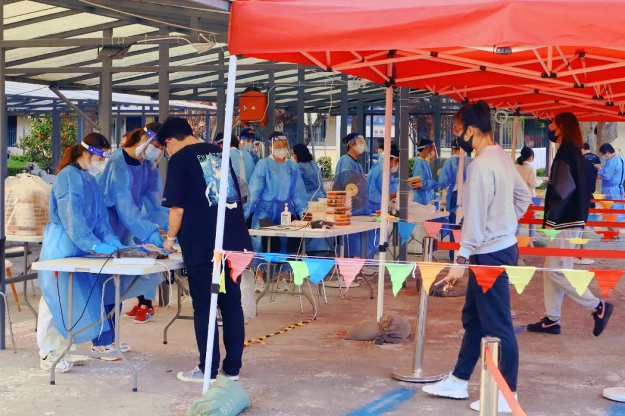 每天片区开门四件事:三餐供应、核酸检测、物资分发、消杀防护,件件不容马虎,桩桩需要人手。