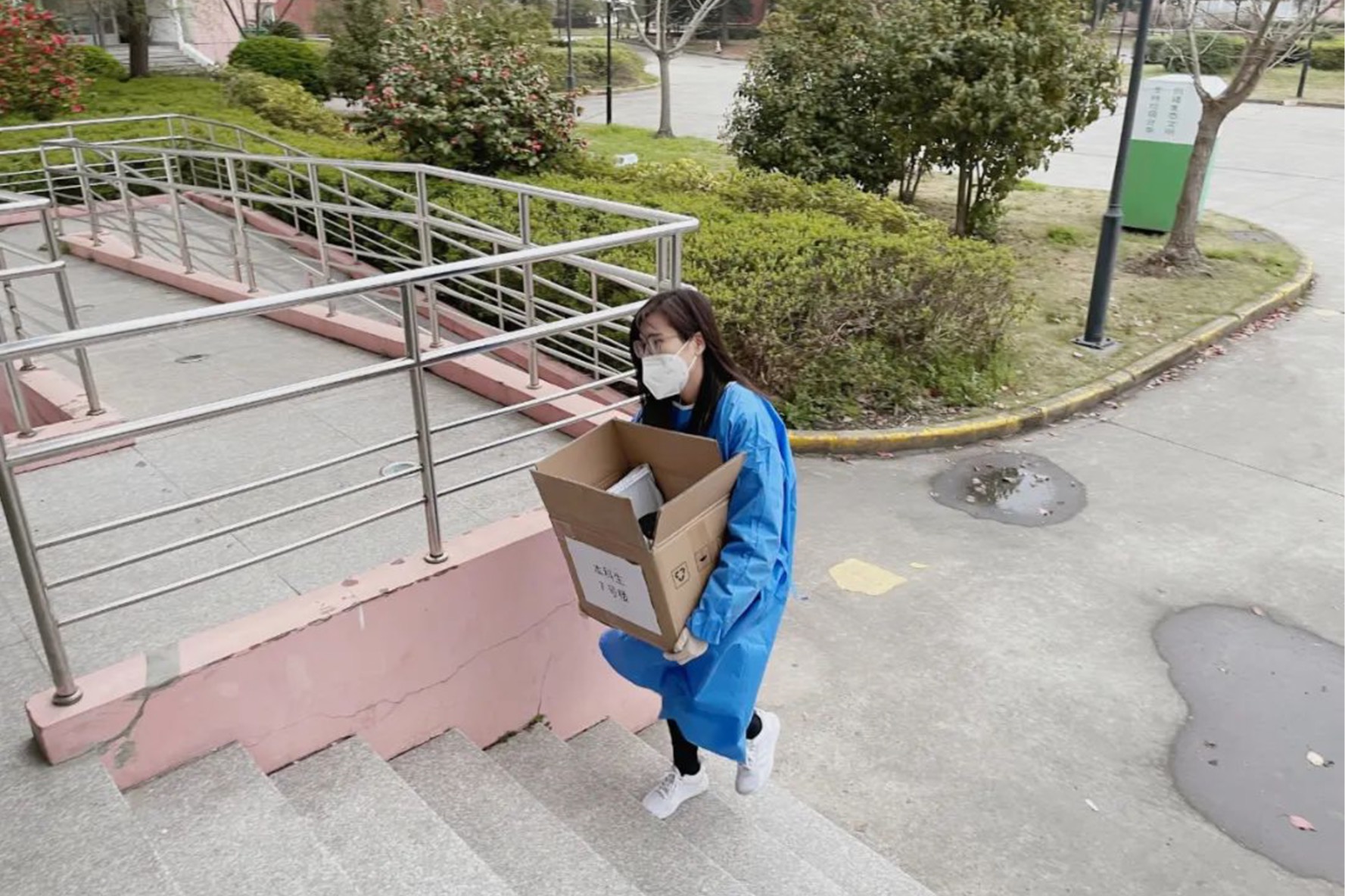 无论是大袋的连装盒饭,还是成箱组装的水果,女生志愿团看似瘦弱的身躯却迸发出了强大的力量,组成了一道连接学校、区块与封控学生之间的靓丽弧线。