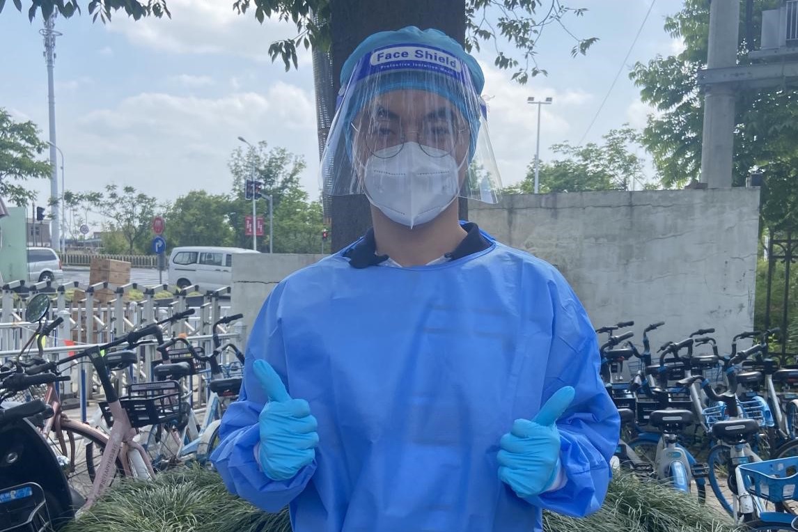 和负责老师杜源恺交流时,我突然意识到核酸检测这支队伍从封控管理第一天起,已经经历了50多天的风雨,一路陪伴研究生公寓走到了现在。