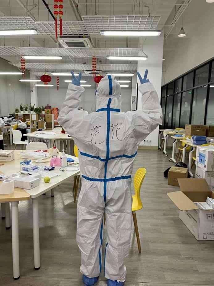 回想起来,最难熬、最难忘的日子是在4月份。4月2日上午,7号楼同学核酸结果异常,当时驻守7号楼的黄岚兰、刘金玉老师和我被告知要紧急回到宿舍“足不出户”,这样一来,北区现场只剩下杜震宇、杜源恺、黄天翔、范慧婷4位老师。