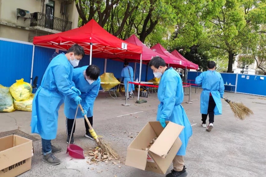杜源恺(大夏书院)、范慧婷(生命科学学院)、于袁欢(校团委)、黄天翔(教务处),驻守闵行校区虹梅南路研究生公寓片区开展工作60余天。今天听他们讲述在片区的战疫故事。
