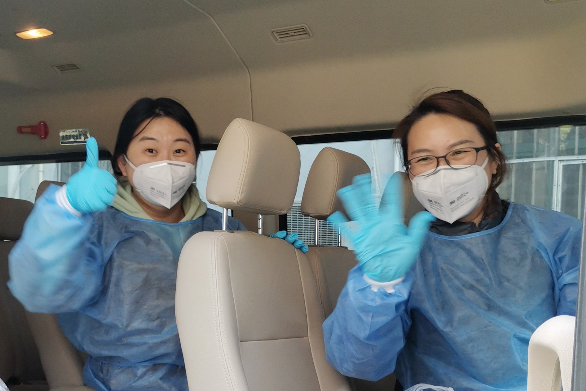另有一天,是生活采购类物资的发放,丽群老师在仓库一改平时的素颜,稍稍化了点淡妆(尽管也是穿了小蓝、戴了N95口罩和面罩),心情尤其好。我们好奇地问她:什么事儿那么开心?她笑眯眯地说:今天是她的论文答辩日,已经顺利通过答辩了。大家都欢呼起来,在仓库里向她祝贺,给她比心,并相约条件允许后,为她举杯欢唱。