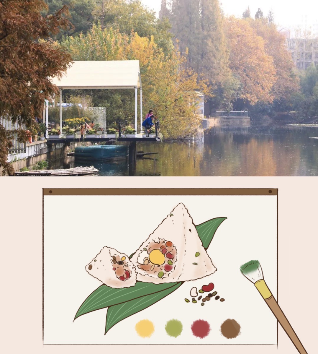 左手一片青翠箬叶,右手一勺春光夏景。在端午节这天,我们将华东师大的色彩包进粽子里赠你。触目可及的颜色,还有触手可及的柔软。