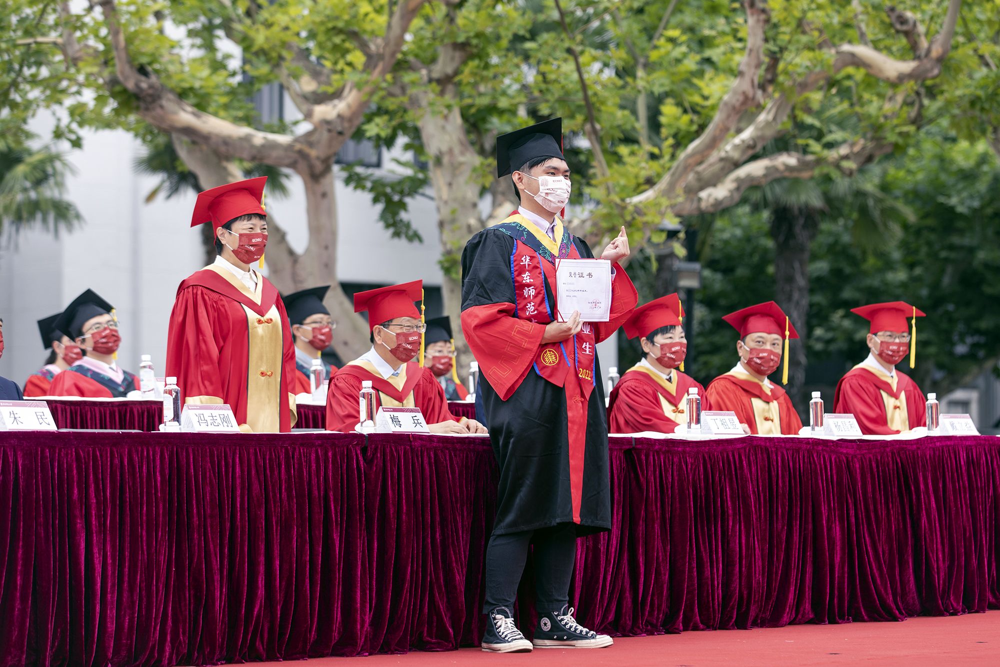 亚欧商学院工商管理专业的童冠铭来自台湾,他是中法创新实验班的学生,大三时去往里昂商学院读2+2的双学位,这次特地申请返校参加典礼,“感谢母校排除万难为毕业生们举办毕业典礼,为我们在师大校园的生活画下完美的句号。”同样返校参加毕业典礼的陶胡昀是历史学系的研究生,她最喜欢华师和华师人低调谦和的性格,“羁鸟恋旧林,对‘闵大荒’的人事物还是难舍一份依恋和怀念。”