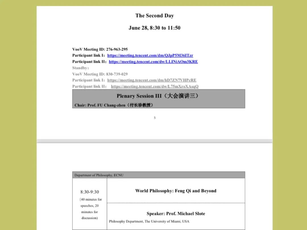 斯洛特的大会演讲安排,题目是《冯契与世界哲学的超越》