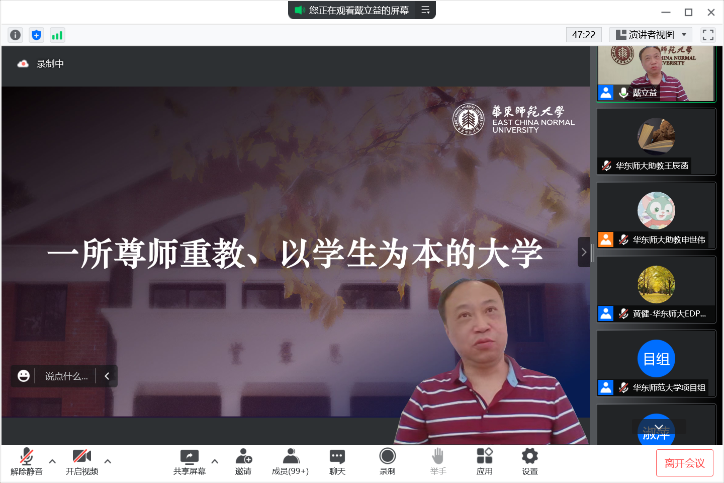 华东师大高级管理者发展与培训中心主任黄健简要回顾了本期培训课程建设、师资教学、平台使用和学员学习等情况。她表示,虽然全程在线培训对质量保障提出挑战,但专家学者的精彩授课、带教导师的全程指导、全体学员的积极投入以及参与各方的全情支持,弥补了在线培训的不足,培训取得良好成效。