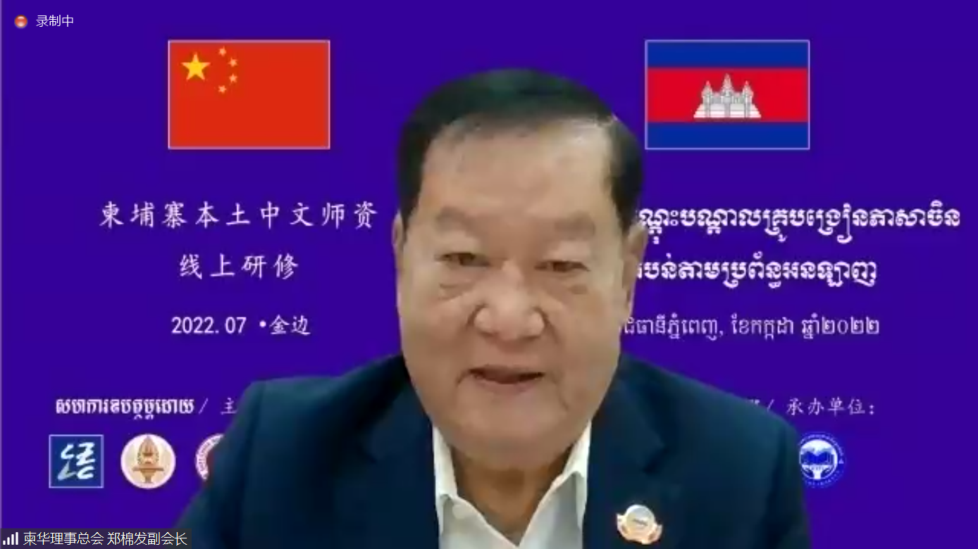 7月19日,2022年柬埔寨本土中文师资线上研修项目开班仪式在线举行。中国驻柬埔寨大使馆公使衔参赞常健、中国教育部中外语言交流合作中心党委副书记宋永波、beat365正版唯一官网顾红亮副校长、柬华理事总会常务副会长郑棉发、柬埔寨皇家科学院院长宋独出席开班仪式并致辞。柬埔寨皇家科学院孔子学院、国立马德望大学孔子学院、柬华理工大学孔子学院、金边皇家大学“DHY汉语中心”、端华学校、民生学校、中华学校等柬埔寨各大中文教育机构的负责人,全柬200余名本土中文教师以及华东师大国汉基地的老师们共同参加了本次开班仪式。