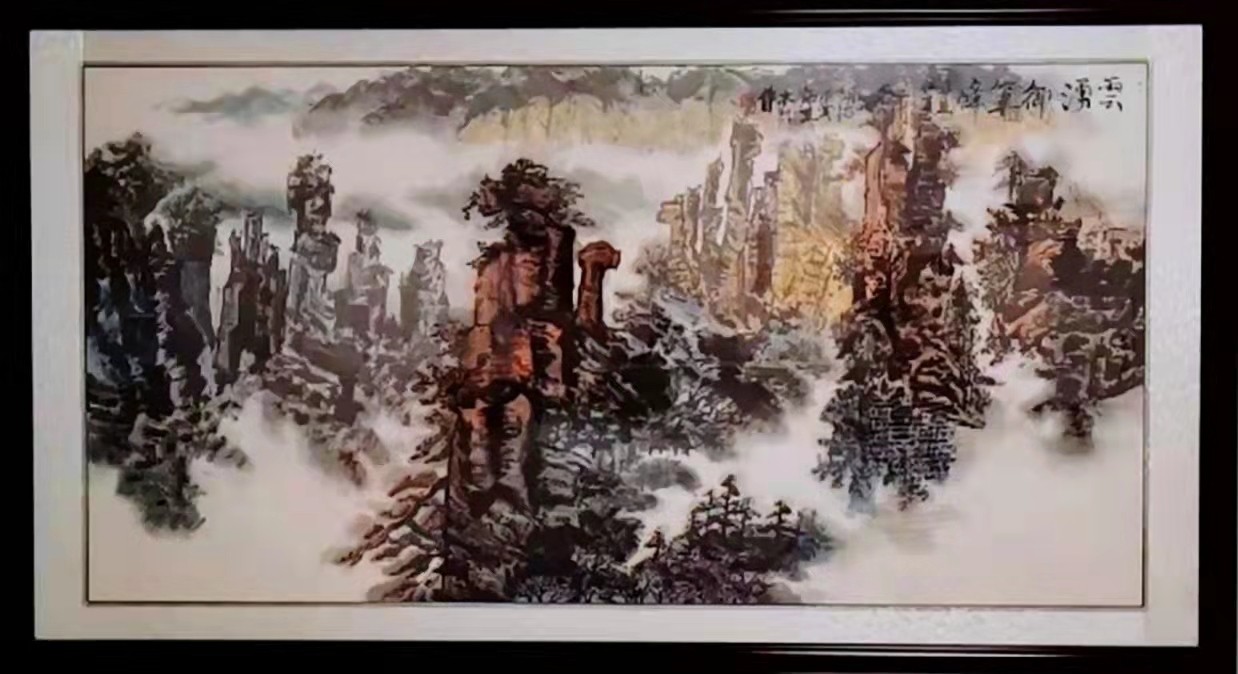 “在美术馆无人参观时,我就对照着网上的照片和全景地图,在笔记本上进行‘写生’。对于中共一大,大家都知道嘉兴的南湖红船和上海的一大会址,但在画作中,无论是油画还是版画,很少能在同一个画面中同时看到这两者。不过对于山水画,胸中有世界,平地起高山,很容易接受空间结构的改变,所以我萌生了把中共一大的两个会址放到同一张山水画中的想法。”