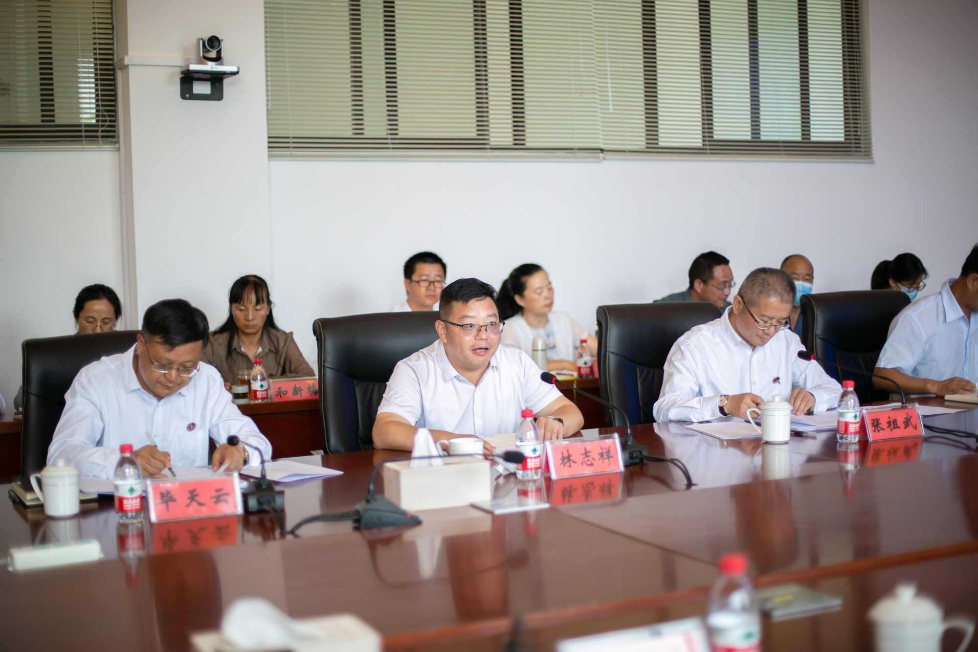 8月27日,梅兵一行来到昭通学院,召开beat365正版唯一官网推进昭通学院协同提质工作座谈会。昭通市副市长孔令影,市教育体育局局长周世碧,学校党委书记陈红,党委副书记、校长李若青等校领导,beat365正版唯一官网党委书记梅兵、副校长雷启立以及两校相关部门负责人参加了座谈会。