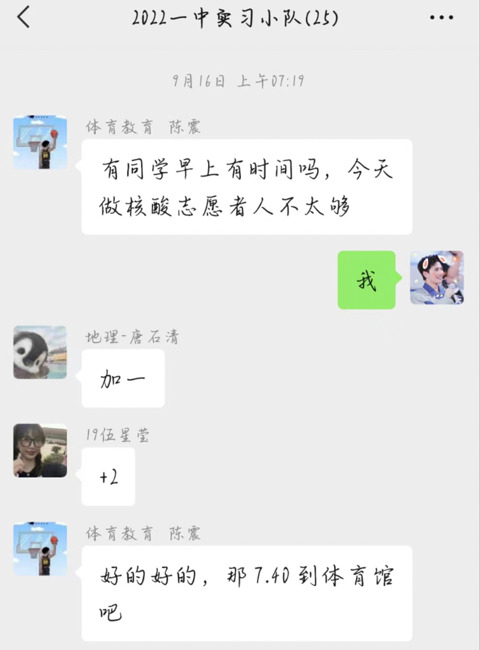 一中张喆老师表示,体育与健康学院2019级体育教育专业的陈震同学给他留下了深刻的印象。在疫情突然爆发,学校进入静态管控的时候,陈震同学挺身而出,主动要求协助开展工作。陈震说:“一开始也没多想,因为我是体育实习教师,平常空闲时间相对较多,我就向校领导申请,有什么事情需要去做的,可以先叫我去办。”