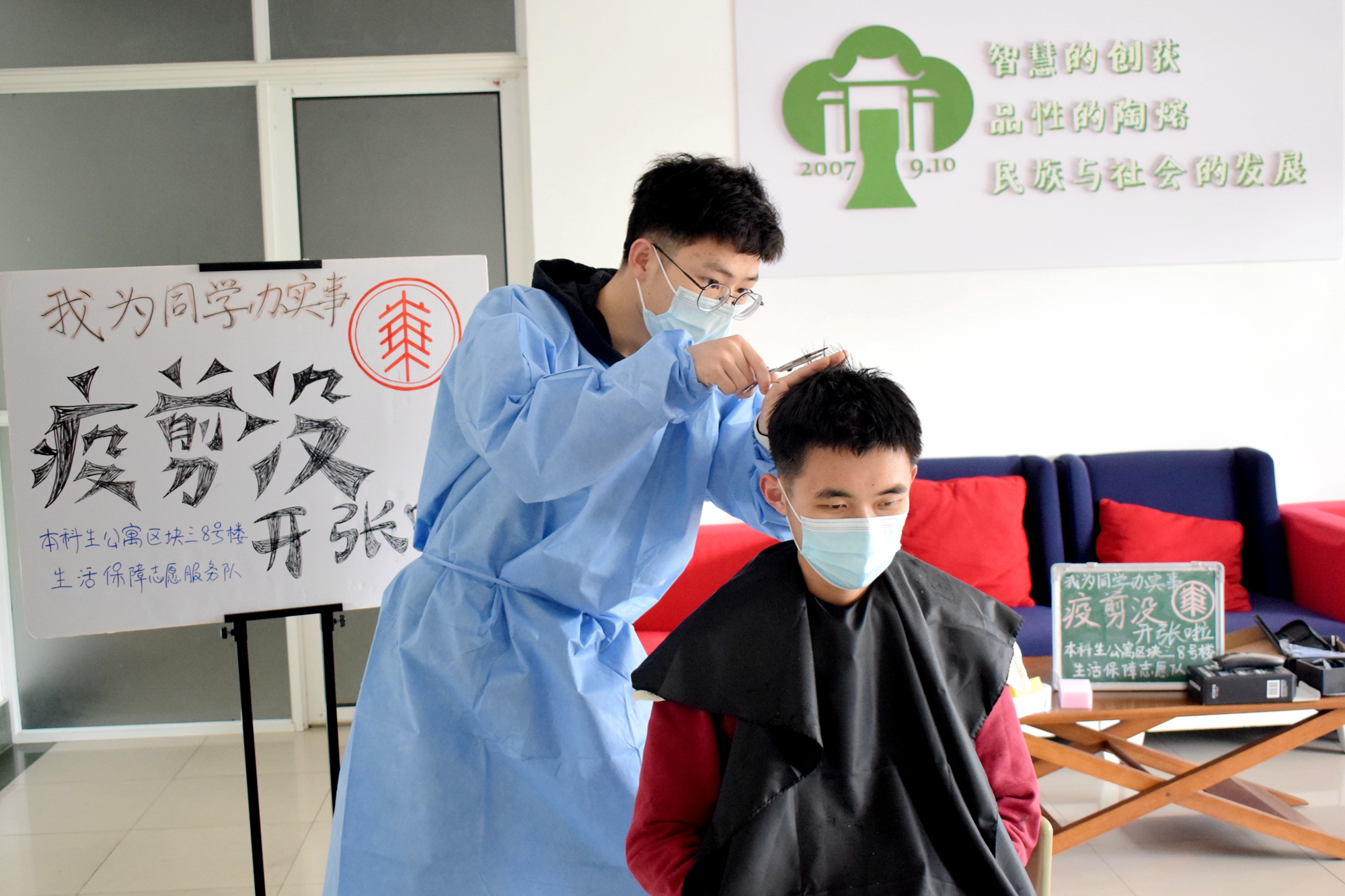 蒙亭峰曾是闵行校区区块三8号楼“疫剪没”理发店的首席理发师