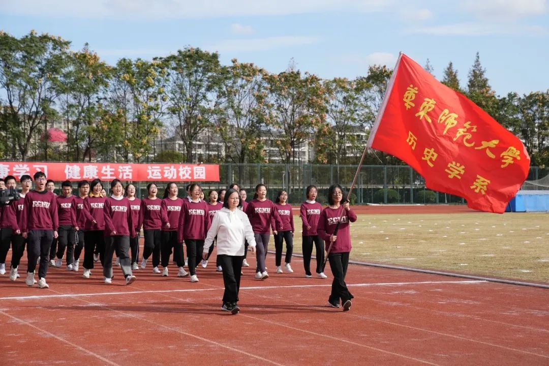 晴空万里,深秋的华东师大活力四射,2022年华东师大运动会开幕式今天在闵行校区东区田径场举行。校党委书记梅兵,校党委副书记杨昌利、曹友谊,副校长周傲英、戴立益、雷启立、顾红亮,校长助理施国跃及部分学部院系负责人在主席台就坐。开幕式由体育与健康学院院长季浏主持。