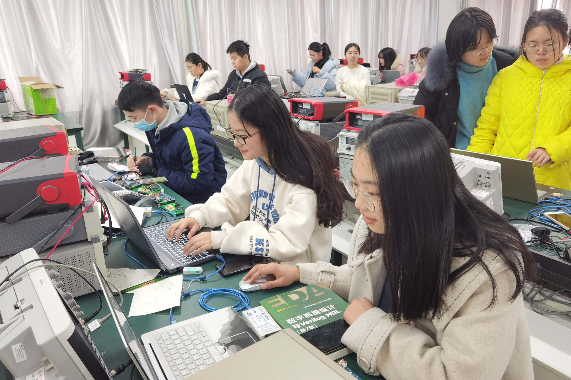 我校对大学生电子设计竞赛一直非常重视,在教务处的指导和大力支持下,通信与电子工程学院自今年年初起就组织赛事选拔及培训,并利用寒暑假组织学生和专业教师留校开展集训。参赛团队不仅要学习大量的软硬件知识,结合实际需求进行反复实操,还需要结合赛题要求,对TI相关平台和产品的使用进行提前准备,为之后的方案设计做扎实详尽的储备工作。