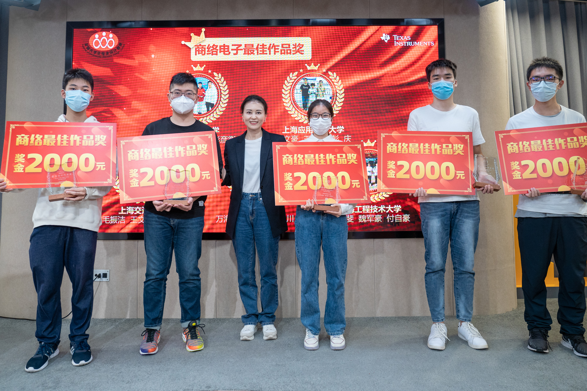 万海缘同学代表团队在颁奖典礼上接受“TI杯”奖杯
