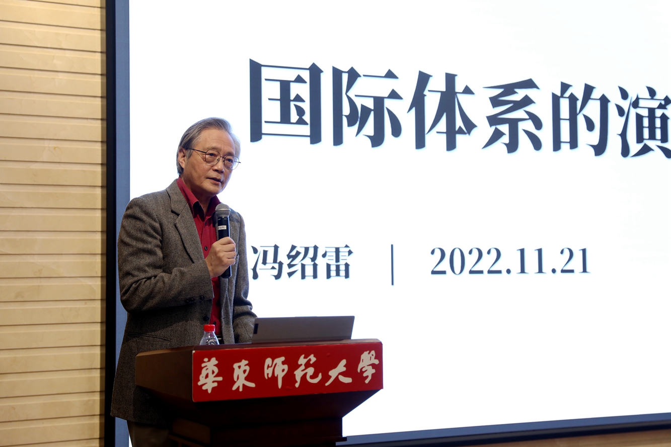 之后,冯绍雷作题为《国际体系的演进与文化嬗变》的主题报告,通过对近代以来世界范围内文化嬗变与国际体系更替演进的相互关系的历史考察,展示文化现象对于国际变化的作用与意义,提升构建人类文明新形态的自觉与认知。