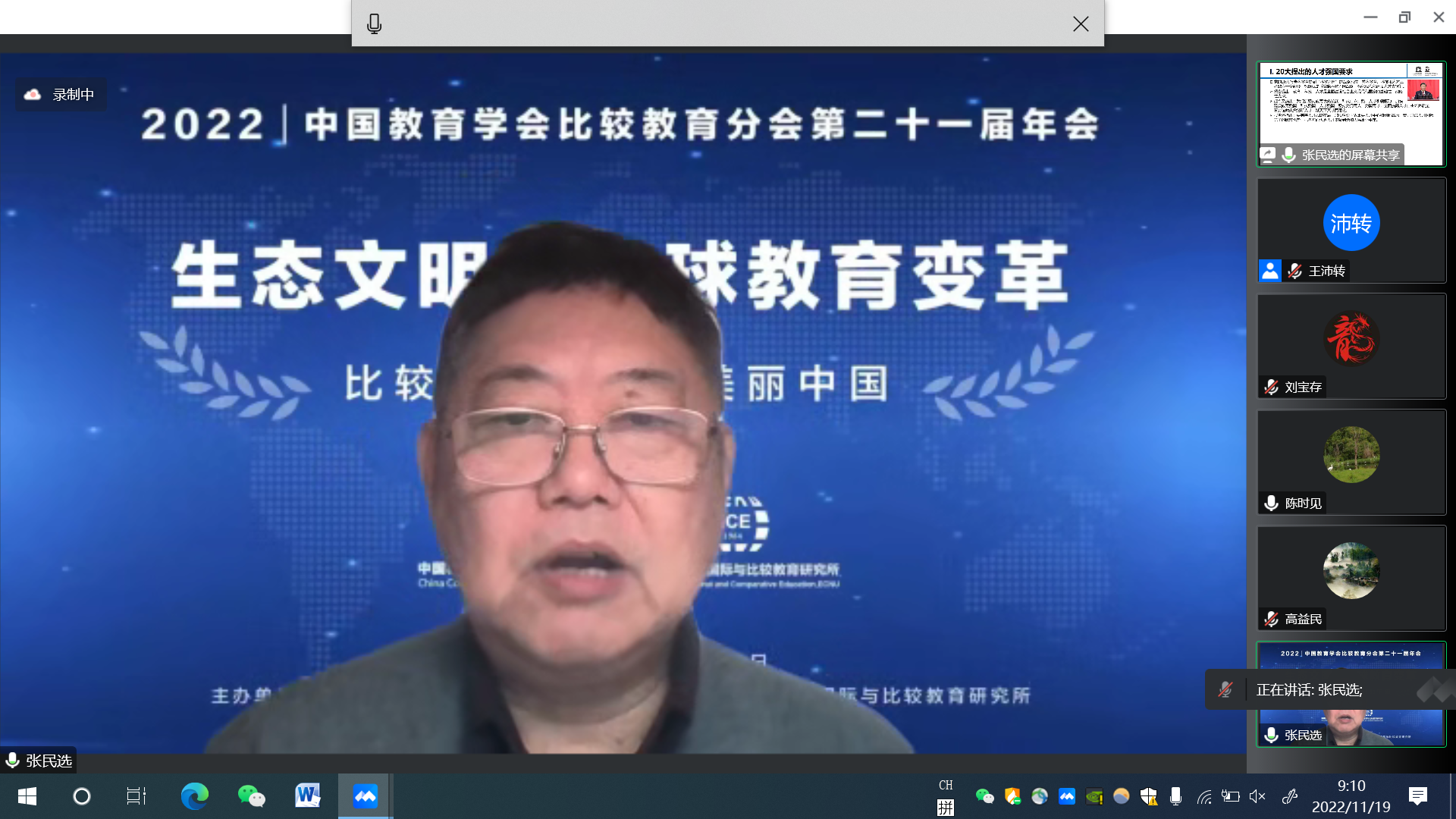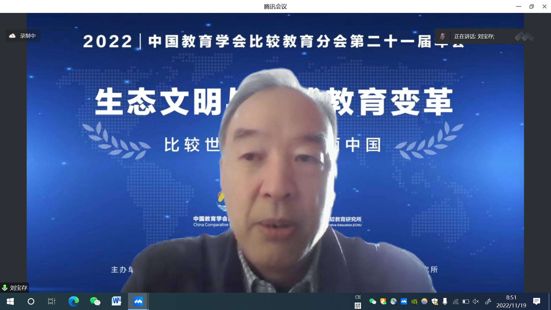 11月18至20日,由中国教育学会比较教育分会主办、华东师大国际与比较教育研究所承办的中国教育学会比较教育分会第二十一届学术年会在华东师大举办。该年会以“生态文明与全球教育变革”为主题,旨在学习党的二十大精神,贯彻中国式现代化的本质要求,促进人与自然和谐共生,推进美丽中国建设。来自全国各地133所高等院校、科研机构、中小学校、学术期刊的528名专家学者和研究生在年会上作了报告,社会各界人士约3.7万人次在线观看了会议直播。