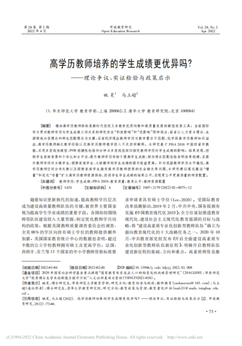 研究论文《高学历教师培养的学生成绩更优异吗?——理论争议、实证检验与政策启示》发表在权威B类期刊《开放教育研究》,基于实证模型分析了高学历教师队伍的效益,建议扩大高学历教师资源供给,实现更公平更高质量的师资配置。研究为我国迈向教育高质量发展阶段、建设高质量教师队伍提供了新的视角。