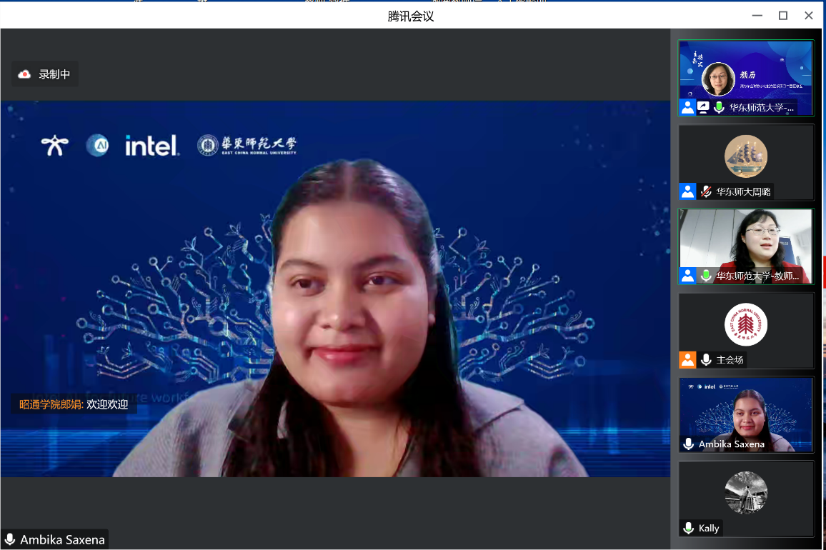 开营仪式之后,戴金权、祝智庭、闫寒冰、英特尔AI for Youth全球种子教师Ambika Saxena、教练Niki Lee五位专家分别从国际和国内视角,分享了人工智能+教育的前沿发展与创新实践。