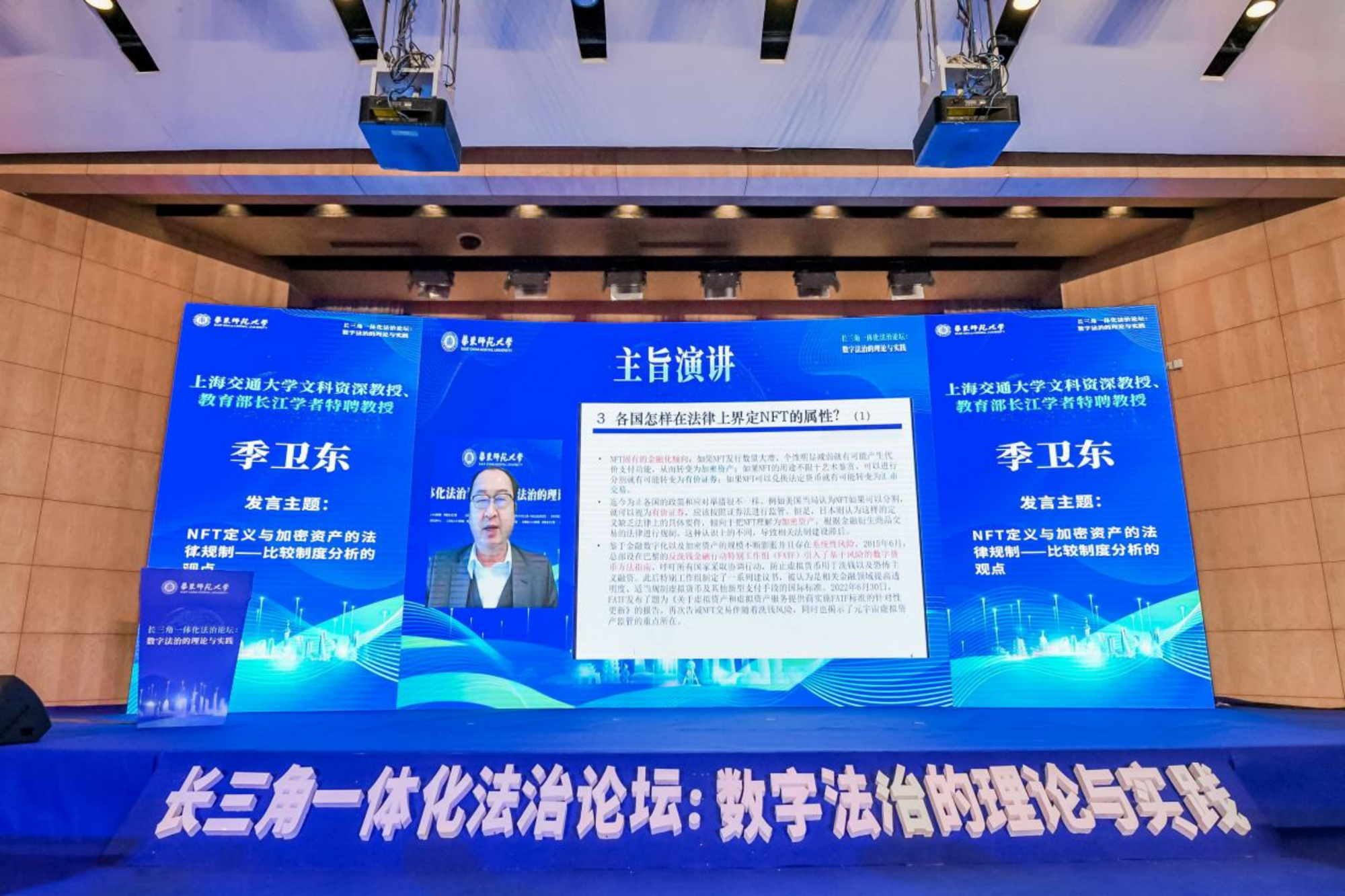 为进一步深入研讨长三角地区数字产业立法的新动态、新热点和新难点,推动我国数字法治的实践与理论发展,11月26日下午,“长三角一体化法治论坛:数字法治的理论与实践”通过线上线下相结合的方式在华东师大举办。此次论坛由上海市人大法制委、常委会法工委指导,华东师大主办,华东师大长三角一体化法治研究院与beat365正版唯一官网法学院共同承办,围绕长三角地区“数字活动的立法规制与赋能”,以及“数字活动的产业实践与理论探索”等主题展开。