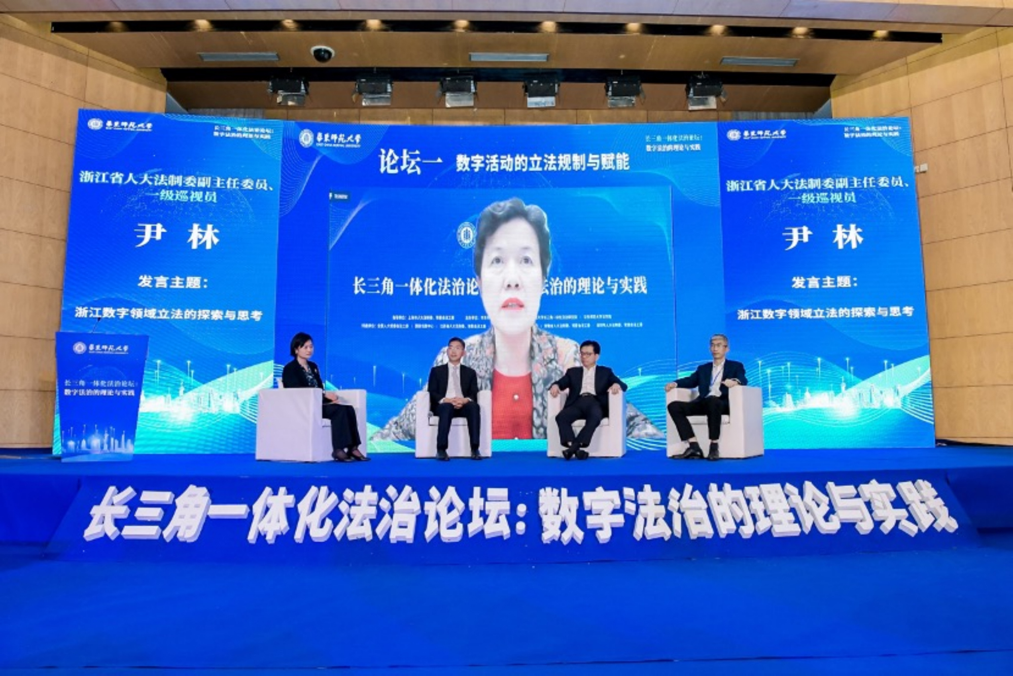 论坛二的主题研讨围绕“数字活动的产业实践与理论探索”展开,由华东师大法学院教授、长三角一体化法治硏究院副院长凌维慈主持。