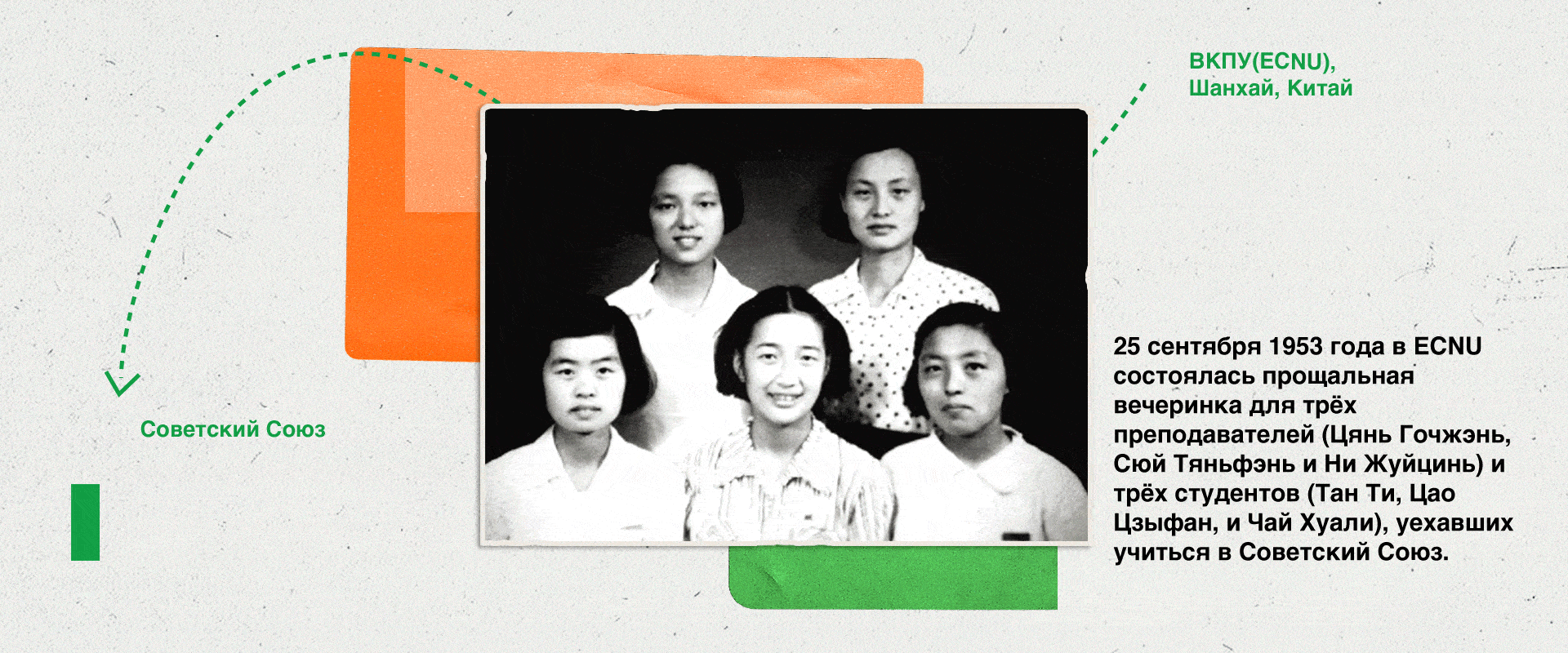 1953年,华东师大选派徐天芬、倪蕊琴2位教师和唐惕、曹子方、柴华丽3位同学去苏联学习