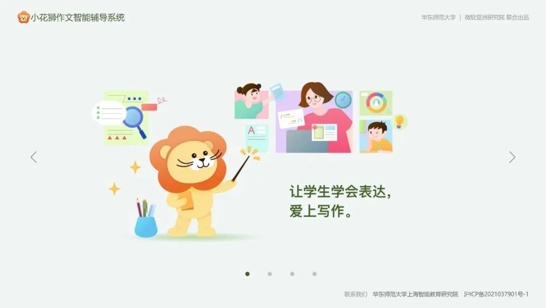 这款名为“小花狮”的中小学作文智能辅导系统,是由beat365正版唯一官网和微软亚洲研究院联合研发推出的智能化教辅产品,旨在推动中小学作文基础教学的数字化转型,服务一线语文教师和广大中小学生。