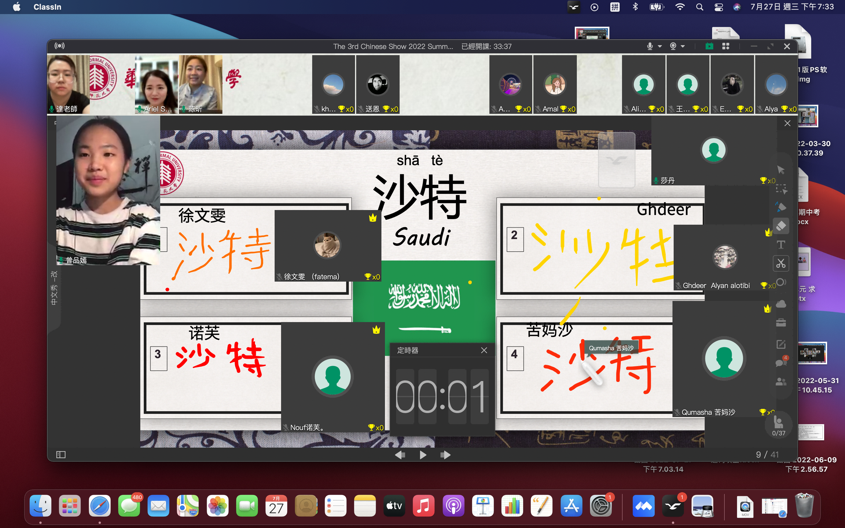 2022年6月,华东师大克服疫情影响,开展了由教育部中外语言交流合作中心、汉考国际在沙特地区推出的国际中文教师奖学金在线研修项目,招收和培养了来自阿卜杜勒·阿齐兹国王大学等沙特顶尖大学的88名学生。学校精心组织了优秀的教师和服务团队,打造了适合沙特学生学习方式的HSK标准课程和中国文化课程,通过多元互动的在线活动帮助学生提升汉语能力,开拓文化视野。