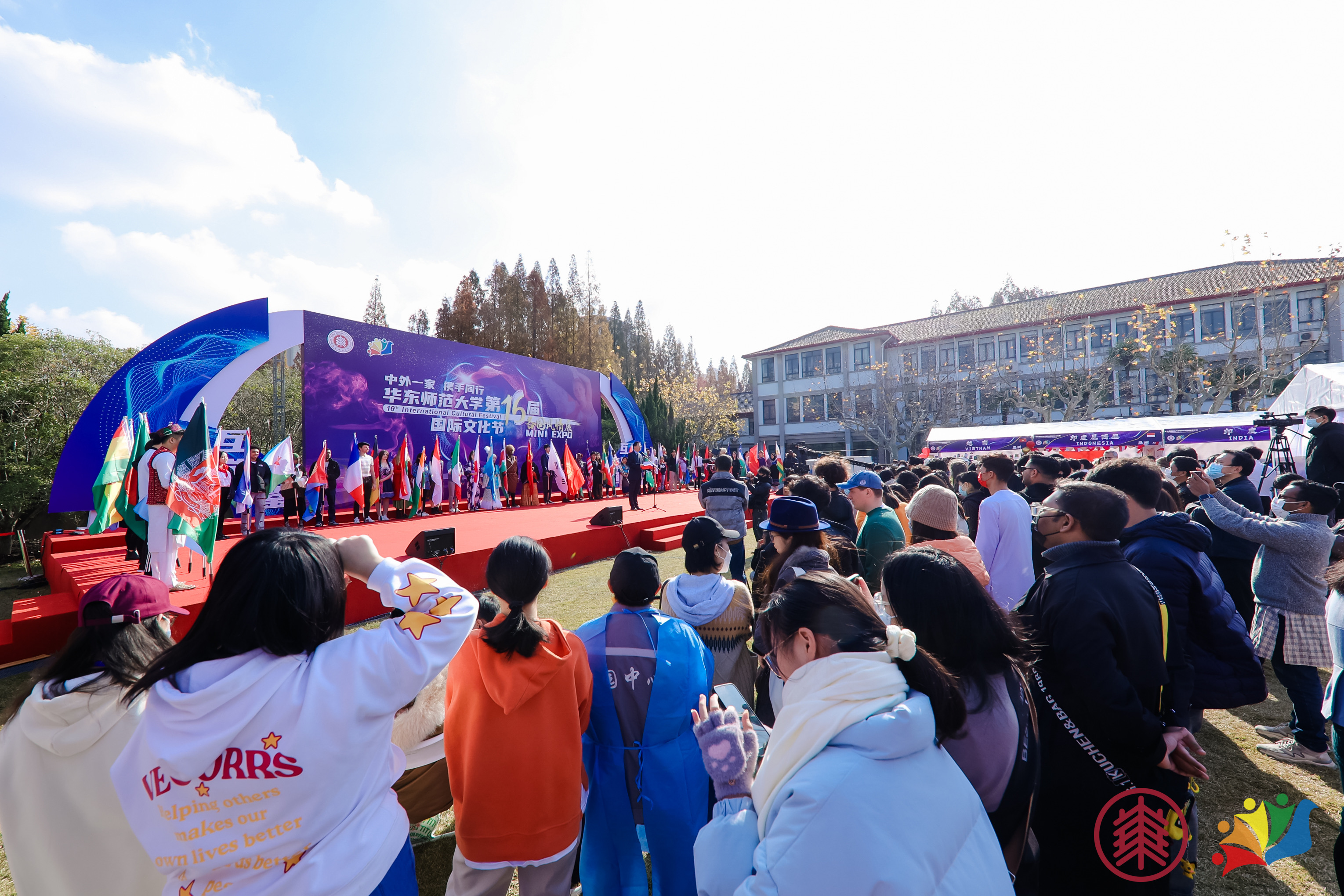 12月11日,华东师大第十六届国际文化节“Mini Expo多国风情展”在普陀校区举行。本次文化节以“互学、互鉴、互融、互通”为主题,来自六大洲44个国家的学生代表参展,150多名中外学生参与演出,中外师生通过线上线下相结合的方式参与其中,体验文化交融的欢乐嘉年华。