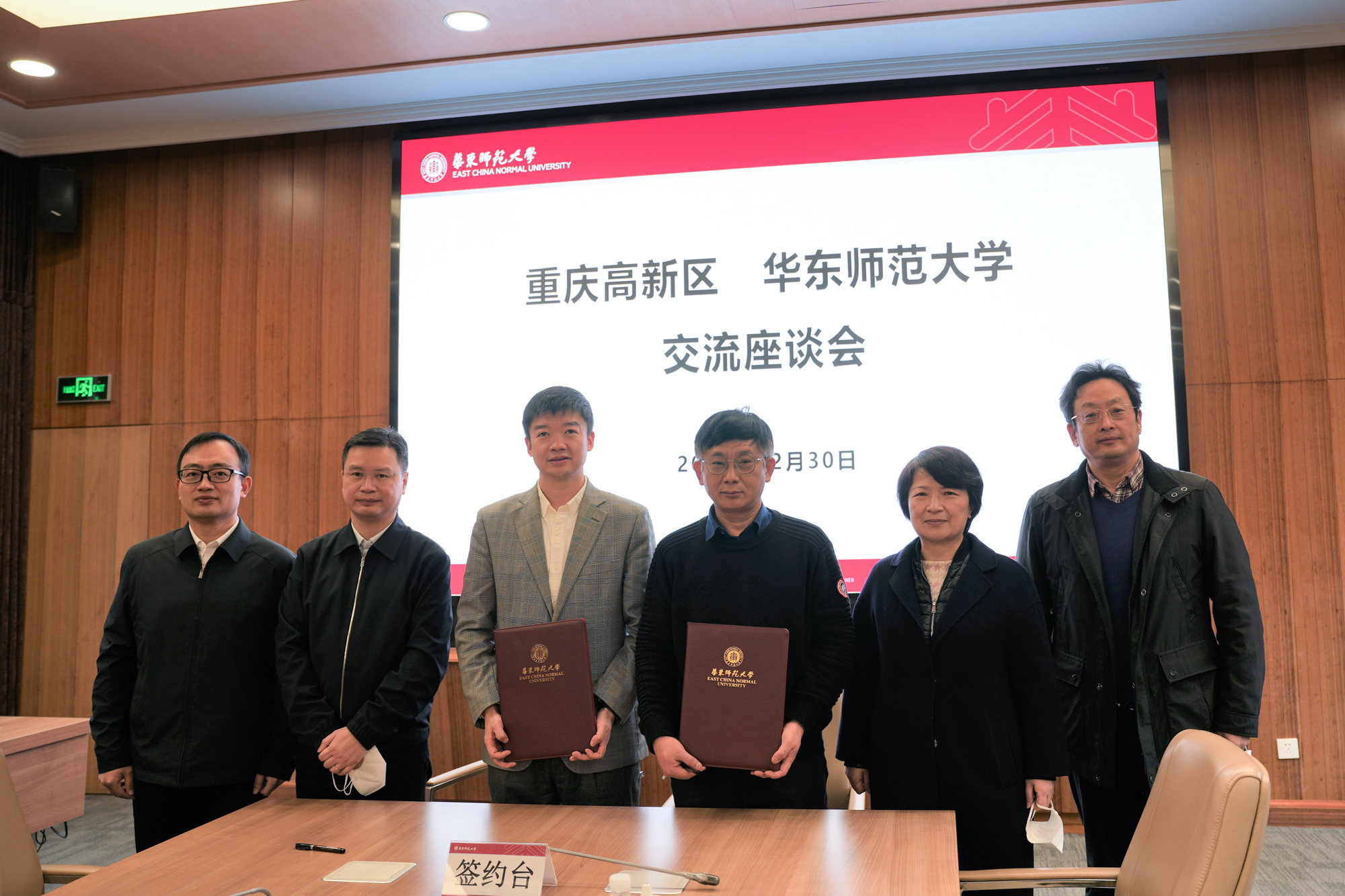 12月30日上午,华东师大党委书记梅兵会见了西部科学城重庆高新区管委会副主任彭世权一行。双方就科技、教育等领域合作进行了座谈交流,校长助理施国跃主持会议,学校办公室、科技处、基础教育与终身教育发展部、生命科学学院、教师发展学院、精密光谱科学与技术国家重点实验室、重庆研究院等部门负责同志参会交流。
