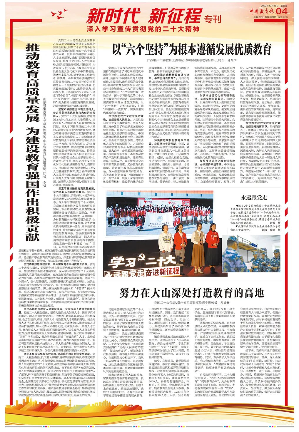 三是充分调动党团队育人全链条参与,进一步推动落实大中小德育一体化建设,根据不同学龄段青少年思政教育特点,在宣讲团成员中开展分层分类学习辅导,更具针对性地开展理论学习与宣讲课程研发,着力推动党团队育人链条相衔接、相贯通。