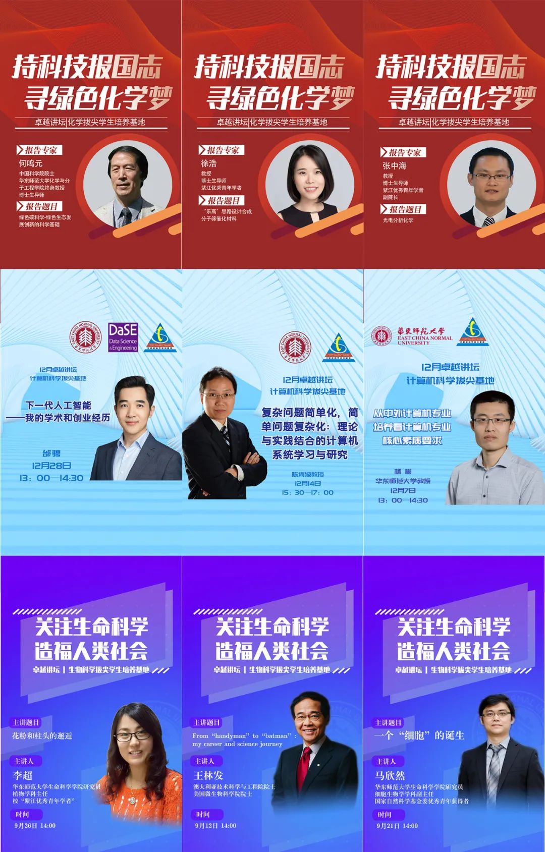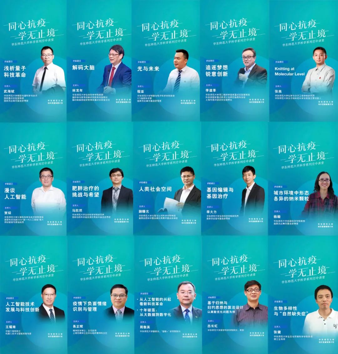 疫情封闭管理期间,科技处、研究生院、教务处合作推出的“华东师大科学系列空中讲堂”第一期、第二期共18场,自3月21日开始理工科领域高水平专家,每天为校内外师生提供一场学术报告。“本科招生”系列直播、教务处“卓越讲坛”系列直播全年覆盖,传播科普内容和研究成果。