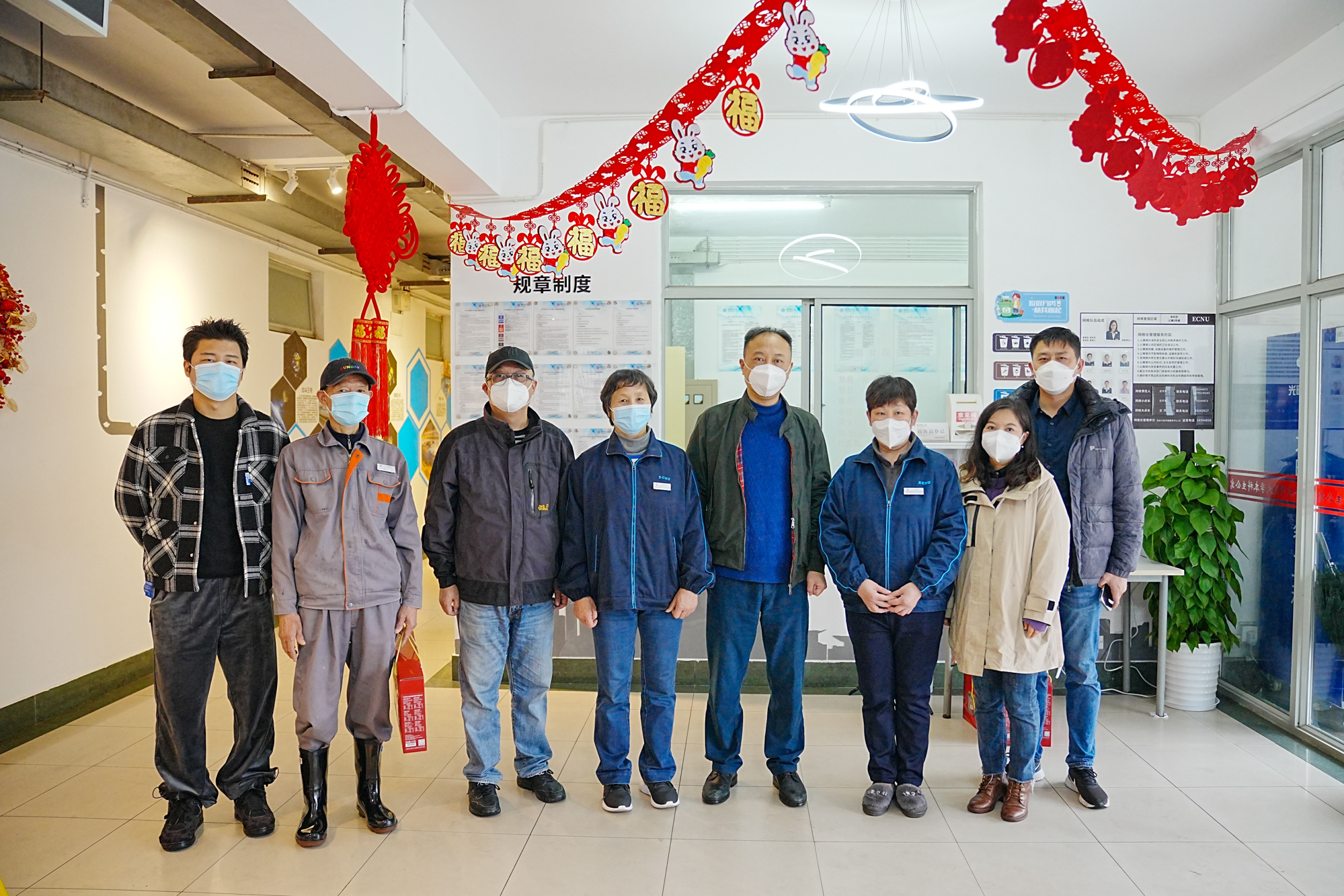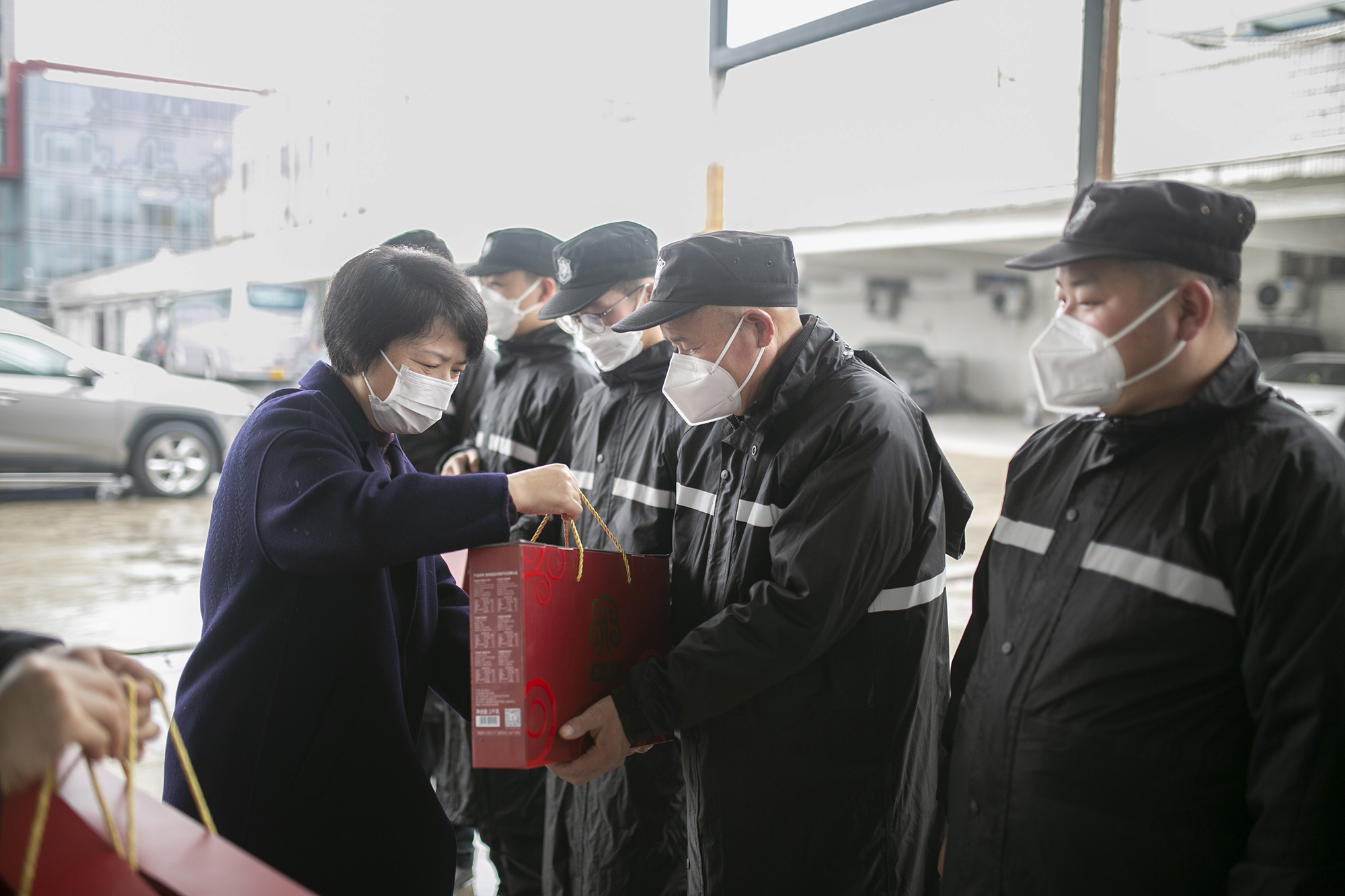 校领导来到总值班室、门岗、车队、校医院、保卫处、报修大厅等校园各一线岗位,慰问寒假留校坚守在工作岗位的安全管理、后勤保障和医疗工作人员,互致问候,感谢大家一年来的辛勤付出和积极贡献,嘱咐大家康复后要注重身体健康、劳逸结合,并为他们一一送上节日慰问品。