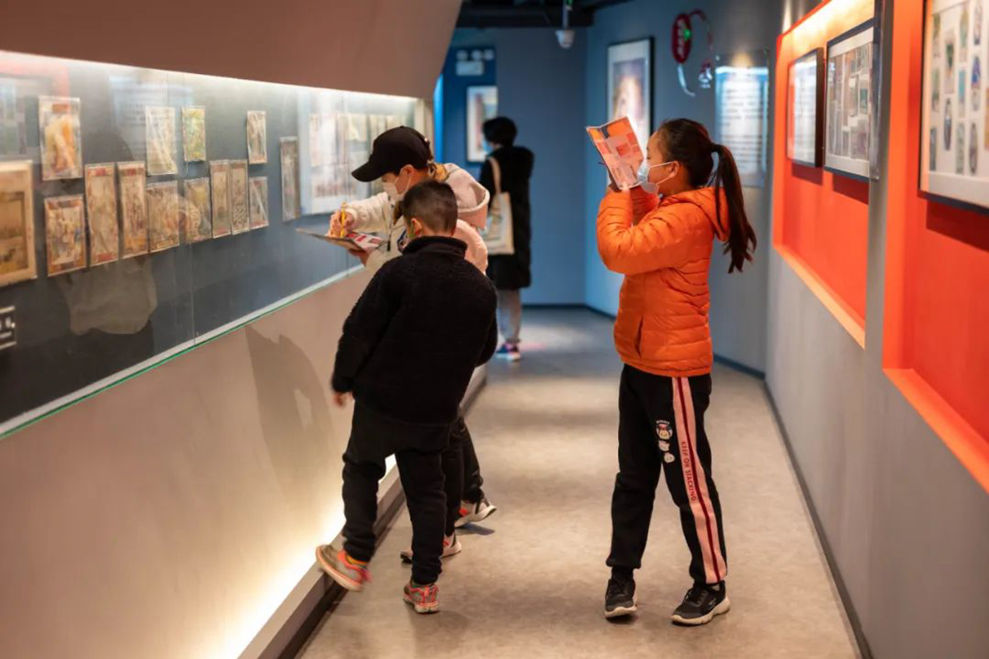 现场,四组家庭使用研学手册,在团队成员钟泳仪的带领下开始了对收藏馆的参观学习。在参观过程中,有的家庭选择在Musepedia导览小程序的“发现”功能中,通过直接阅读各个展品的详细介绍来完成闯关答题,也有的家庭使用Musepedia对研学手册上的闯关问题进行检索,从而获得了对展品信息的深入了解。