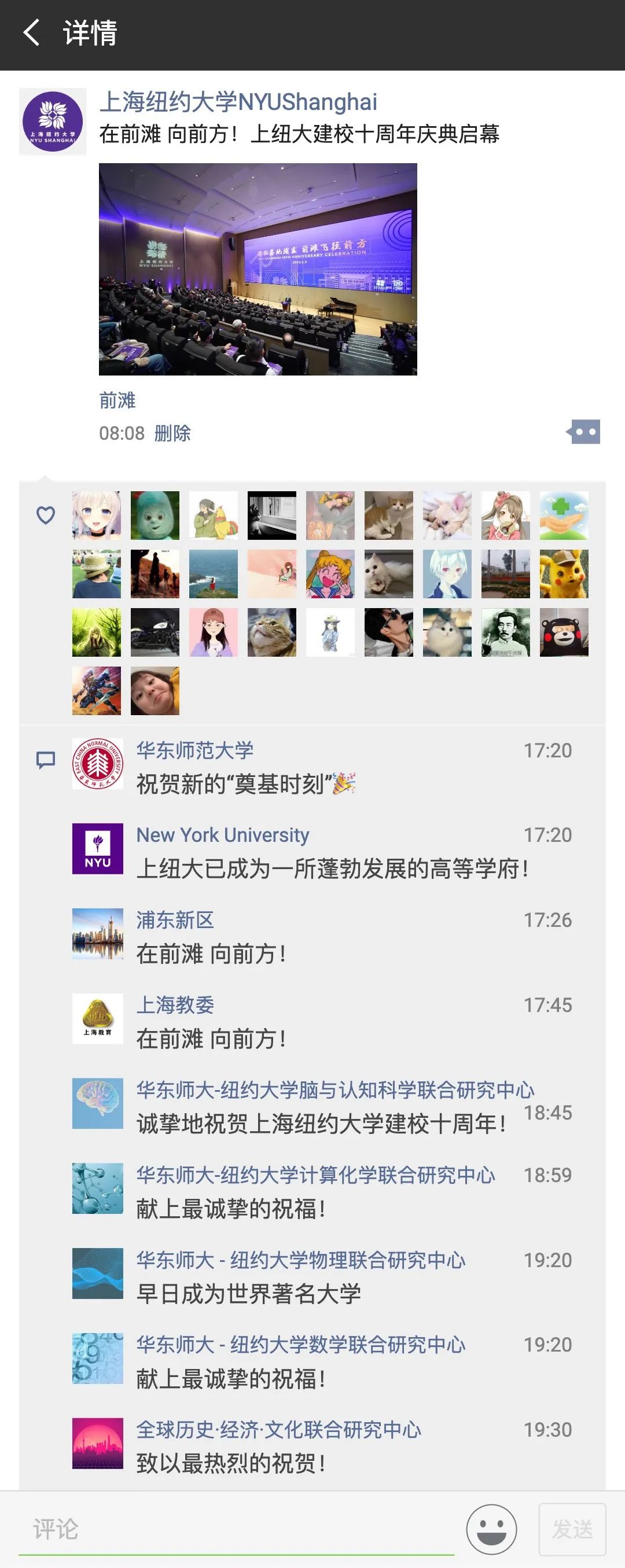 在上海纽约大学十周年华诞到来之际,在上海的丽娃河畔向上纽大的师生校友们致以最热烈的祝贺!
