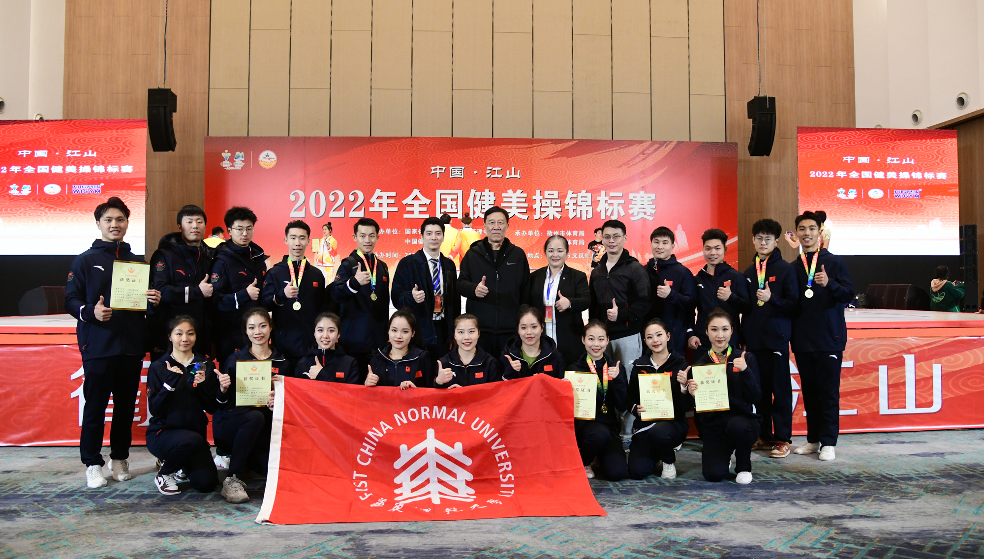 3月1日,2022年全国健美操锦标赛传来振奋人心的好消息,华东师大全明星健美操队在成年组项目比赛中,包揽团体及七个单项的全部金牌,实现该队多个全国健美操锦标赛参赛历史性突破:第一次包揽比赛全部冠军,第一次获得全国锦标赛女单冠军,第一位女运动员“三金王”,第一次包揽全国锦标赛男单冠亚军。