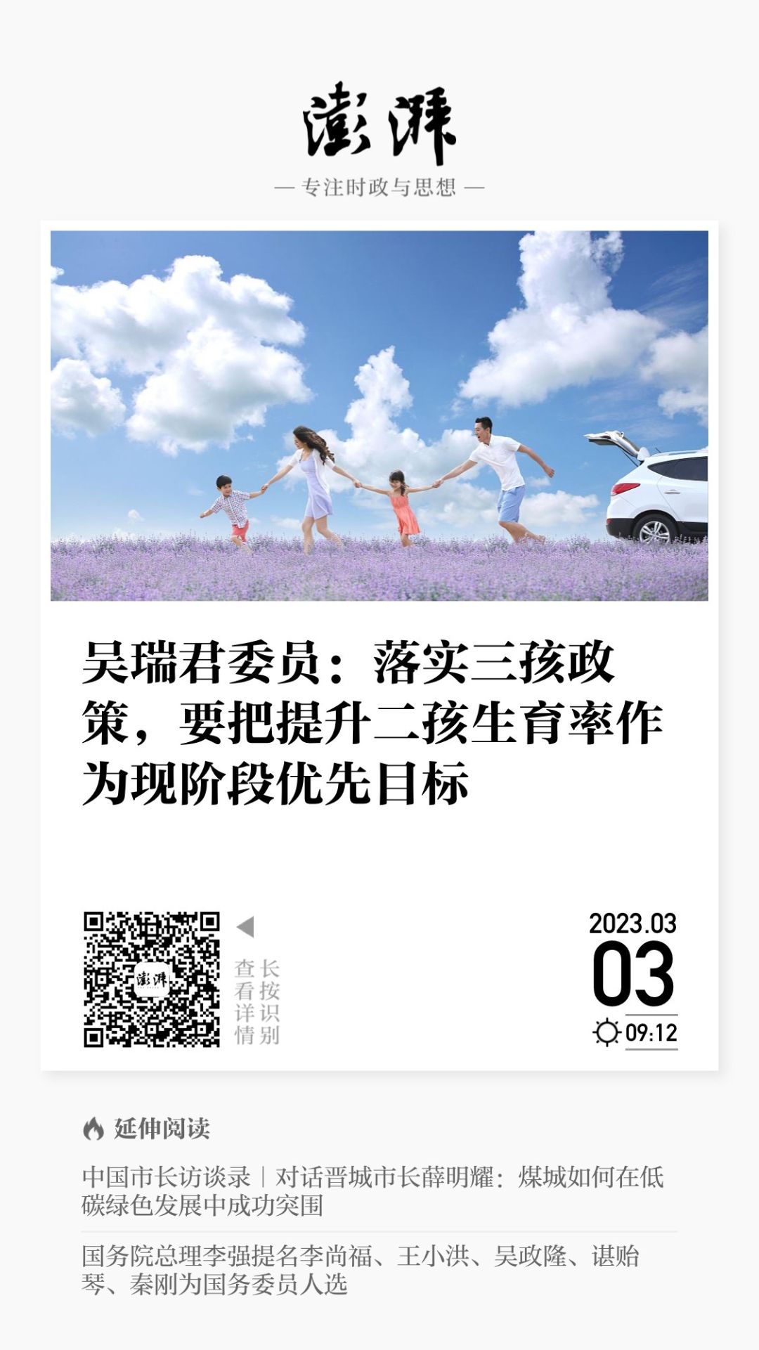 澎湃新闻丨吴瑞君委员:落实三孩政策,要把提升二孩生育率作为现阶段优先目标