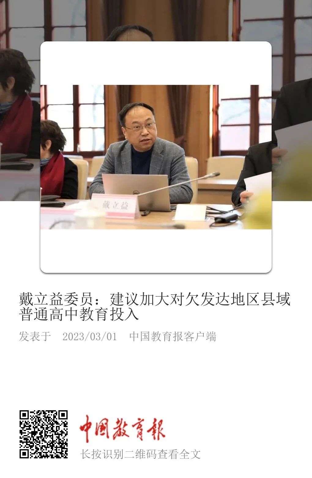 中国教育报客户端丨【两会观点】戴立益委员:加大对欠发达地区县域普通高中教育投入