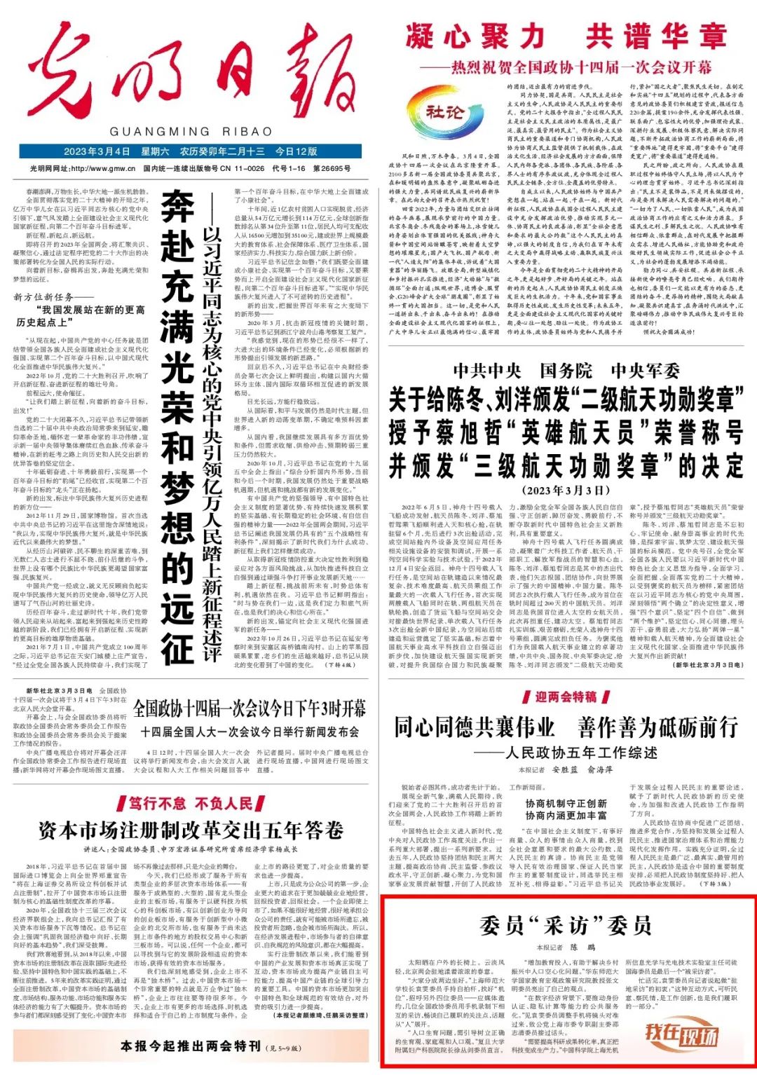 光明日报 头版丨委员"采访"委员