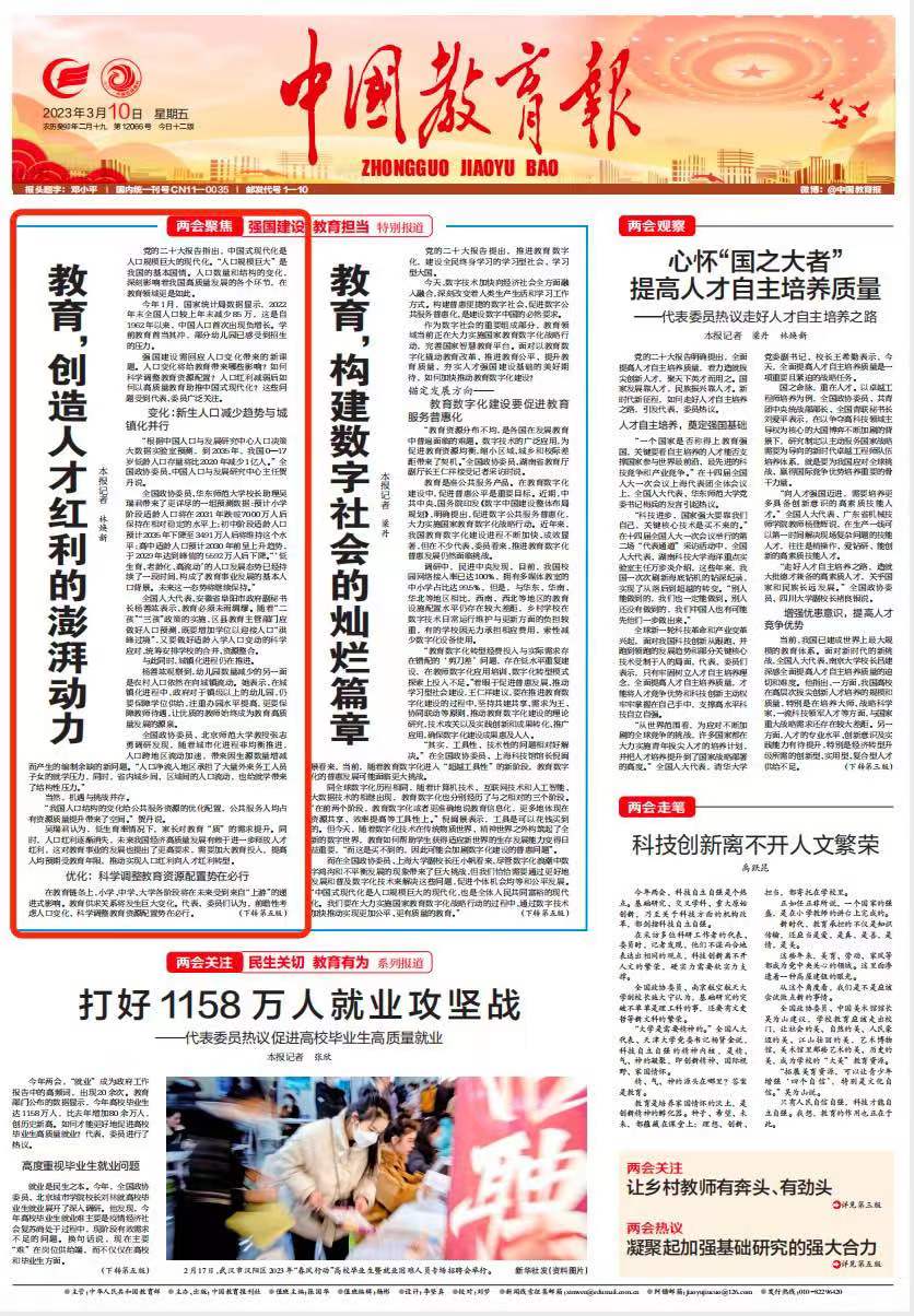 《中国教育报》3月10日 头版