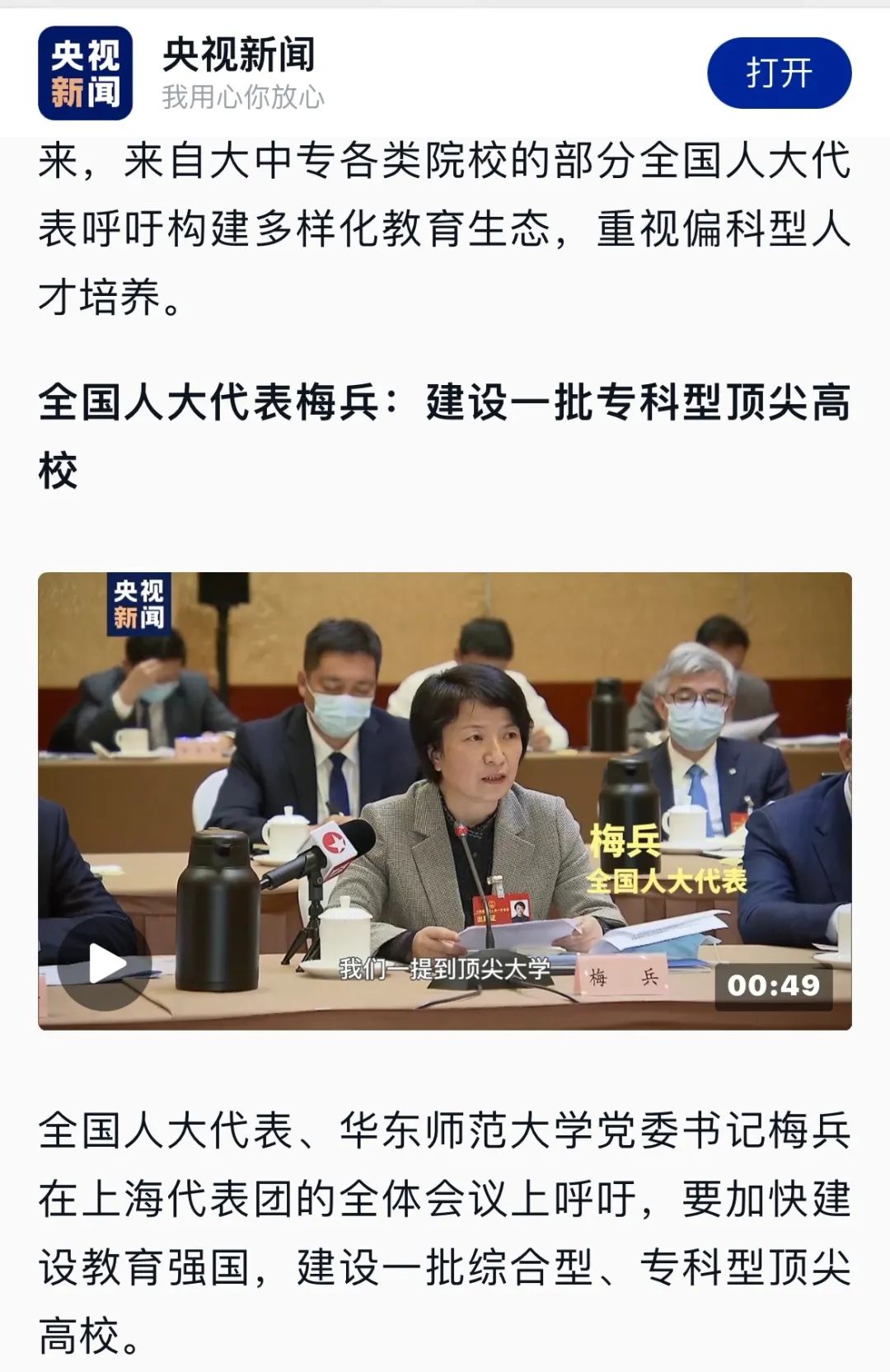 央视新闻客户端丨两会声音丨来自学校的全国人大代表呼吁重视“偏科”人才培养