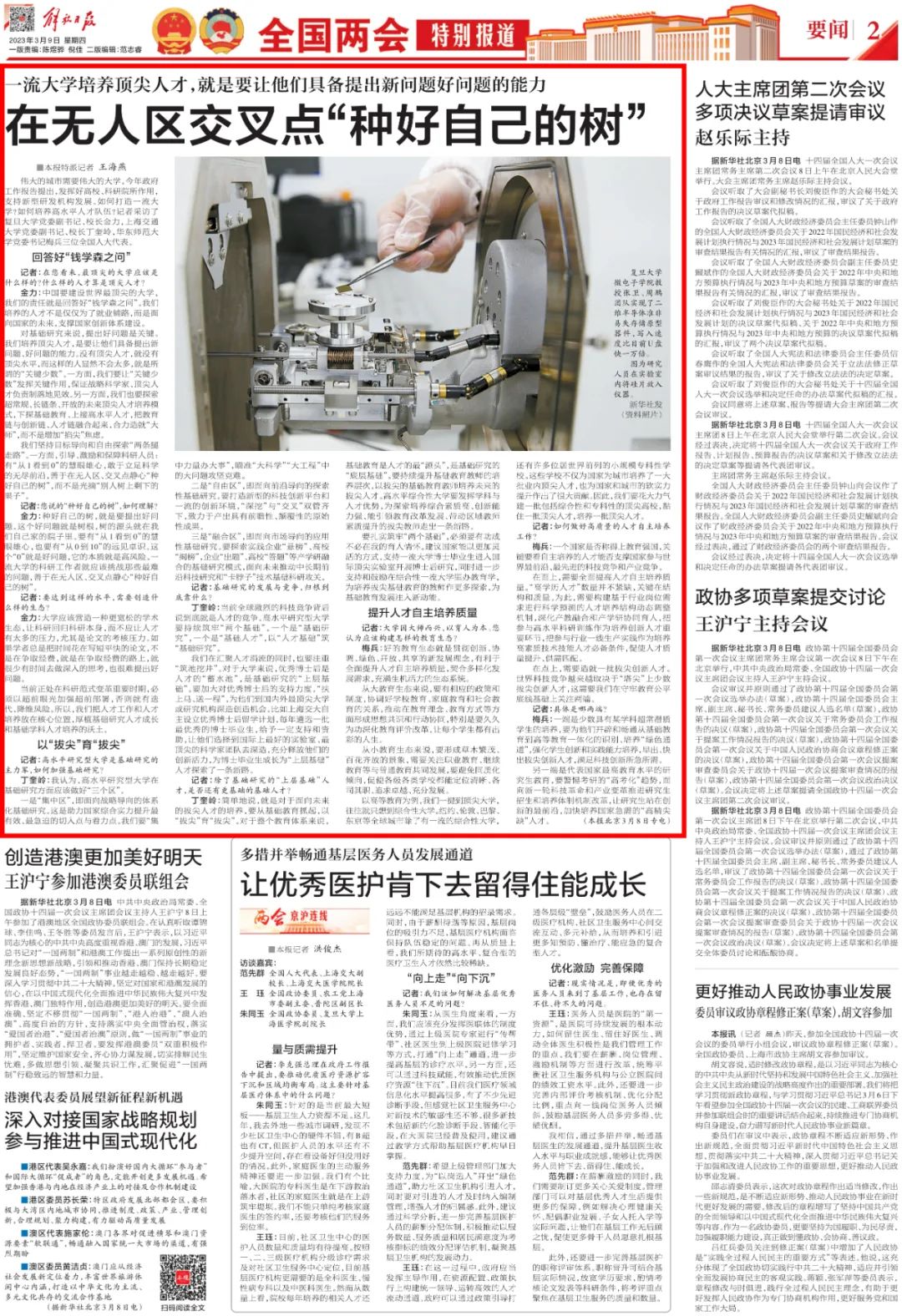 中国教育报丨心怀“国之大者” 提高人才自主培养质量——代表委员热议走好人才自主培养之路