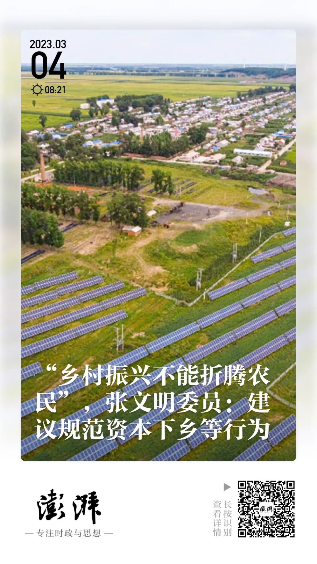 澎湃新闻丨“乡村振兴不能折腾农民”,张文明委员:建议规范资本下乡等行为