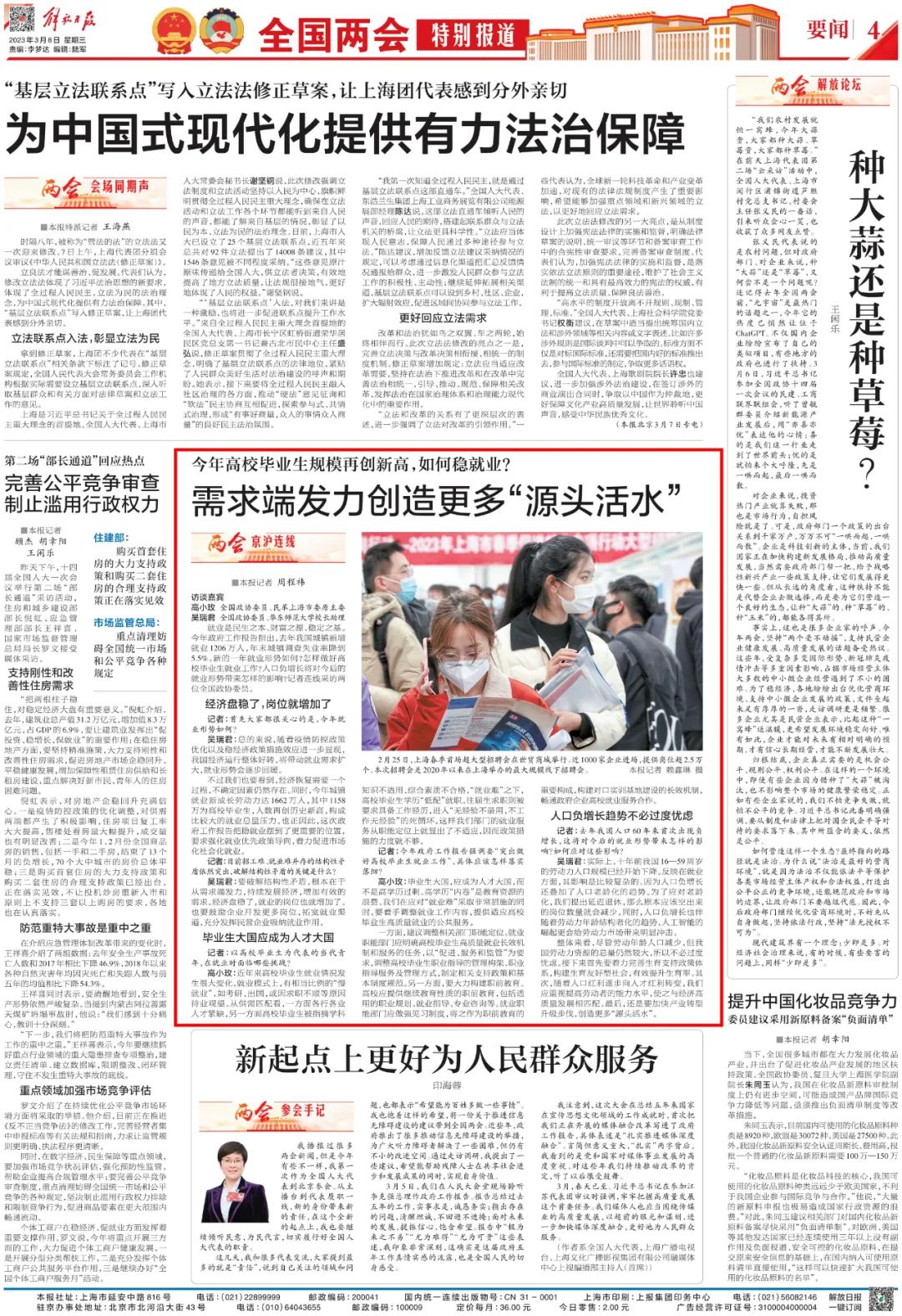 《光明日报》3月4日 头版