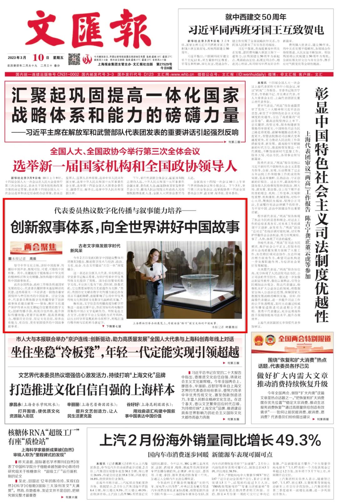文汇报 头版丨创新叙事体系,向全世界讲好中国故事
